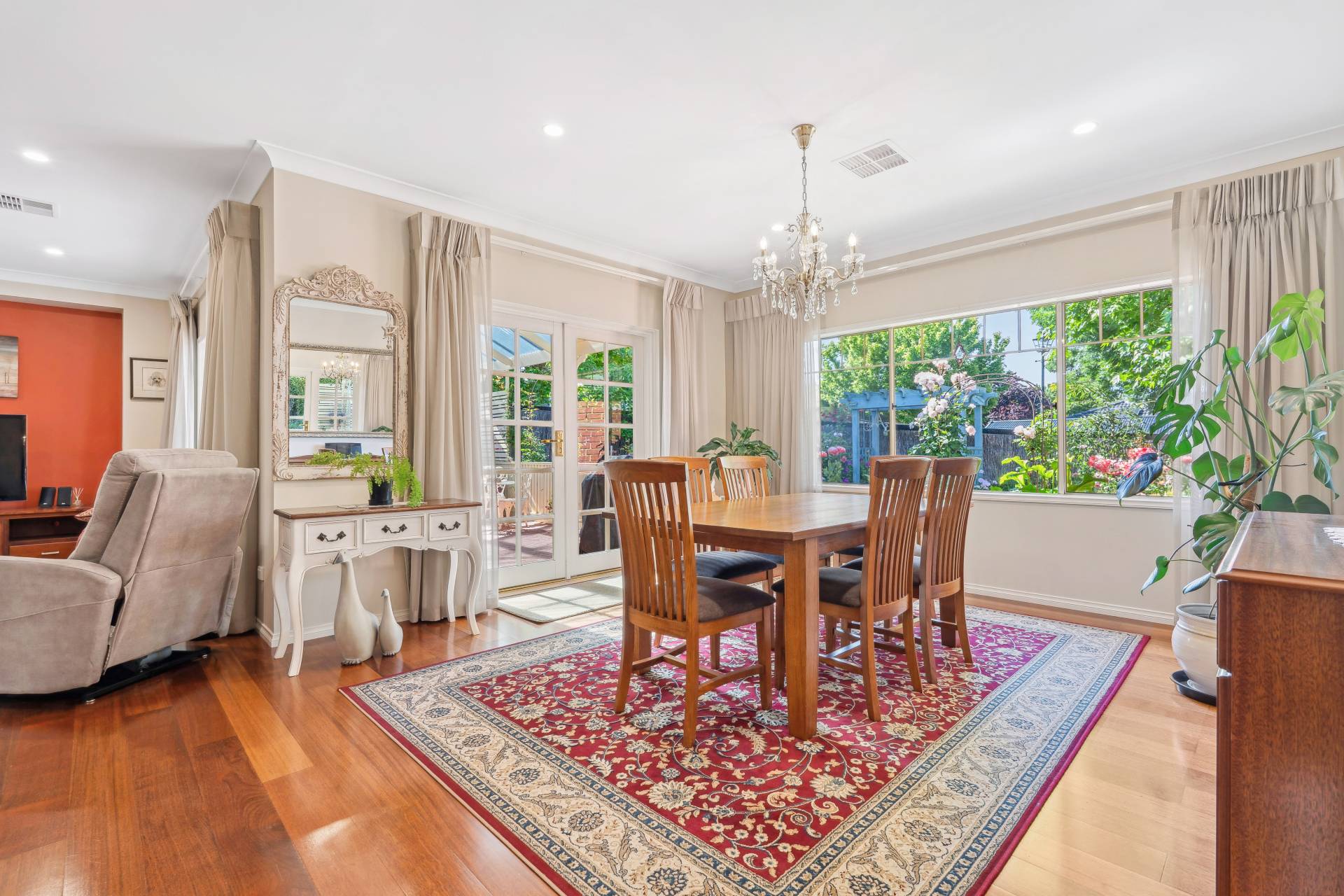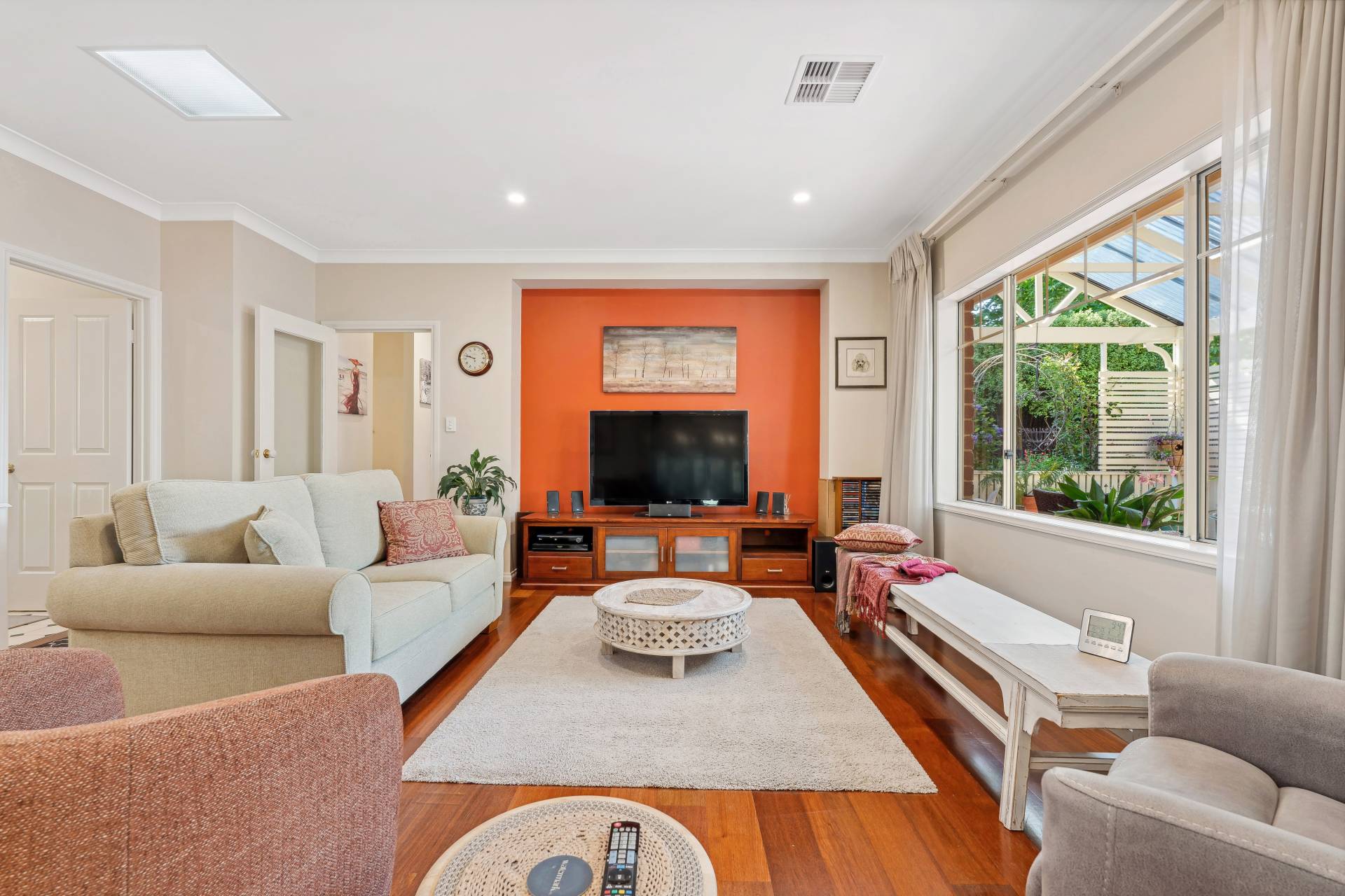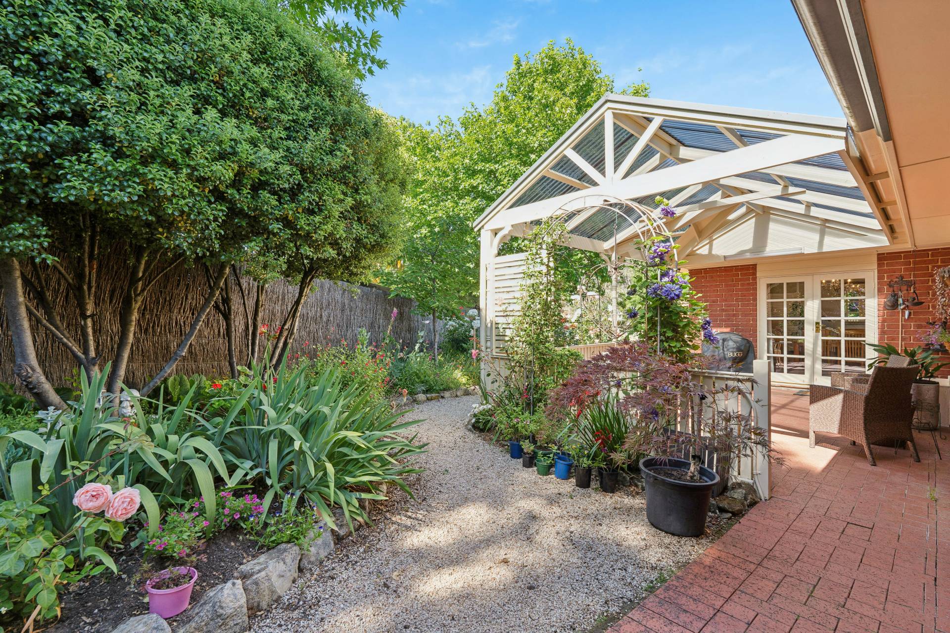 The open plan living, dining and kitchen has polished solid timber floors and captures leafy views through many windows. French doors lead out to an undercover entertaining area, that then traverses through so many pretty garden beds and up to a 6m x 3m shed that has concrete floor, its' own fuse box and dedicated side access from the street.