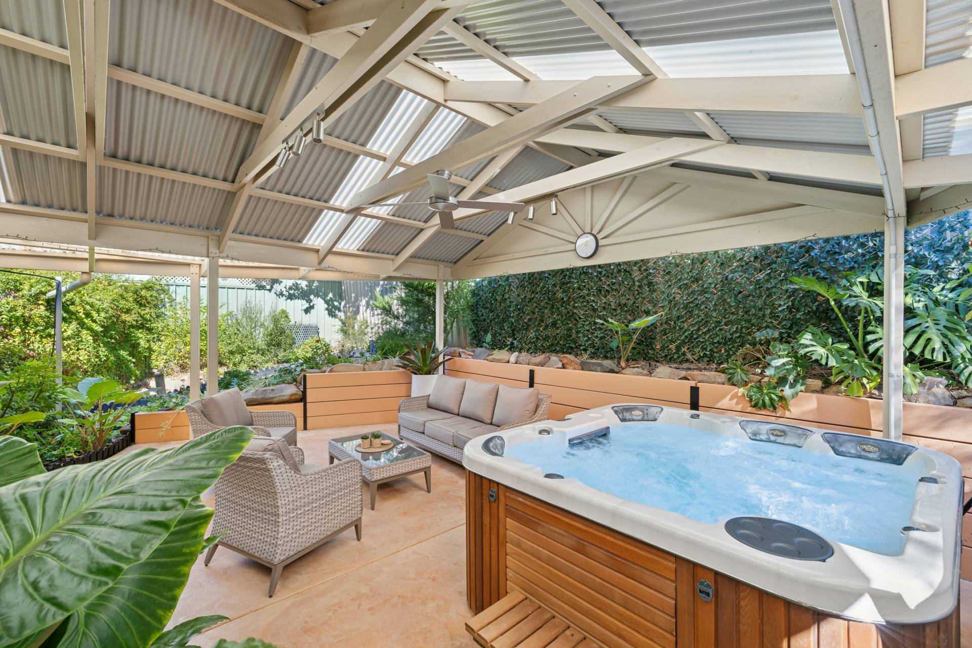 Outside, there's 76sqm's of undercover entertaining space, complimented with a radiant heater, ziptrack blinds, gardens with stunning tropical inspired broad-leafed plants and a recently serviced heated spa that will stay with the sale.
