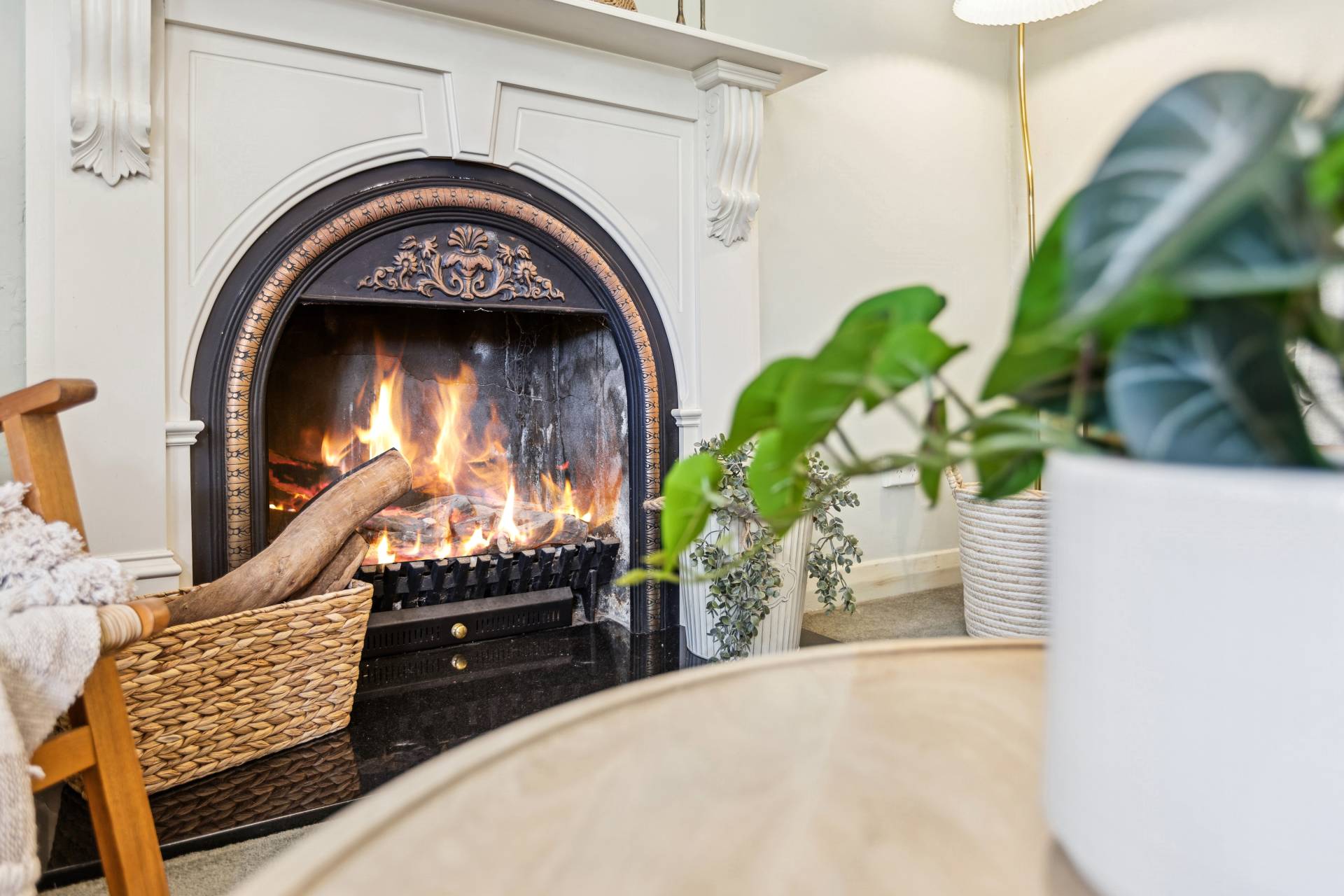 The living room is wonderfully quaint, anchored by a gas fireplace on a granite hearth. Behind its surround, the original smoking shelf and cooking pot hooks still remain, a nod to the home’s 19th century heart. This is the place to curl up with a book, a glass of red, and feel the world slow down.