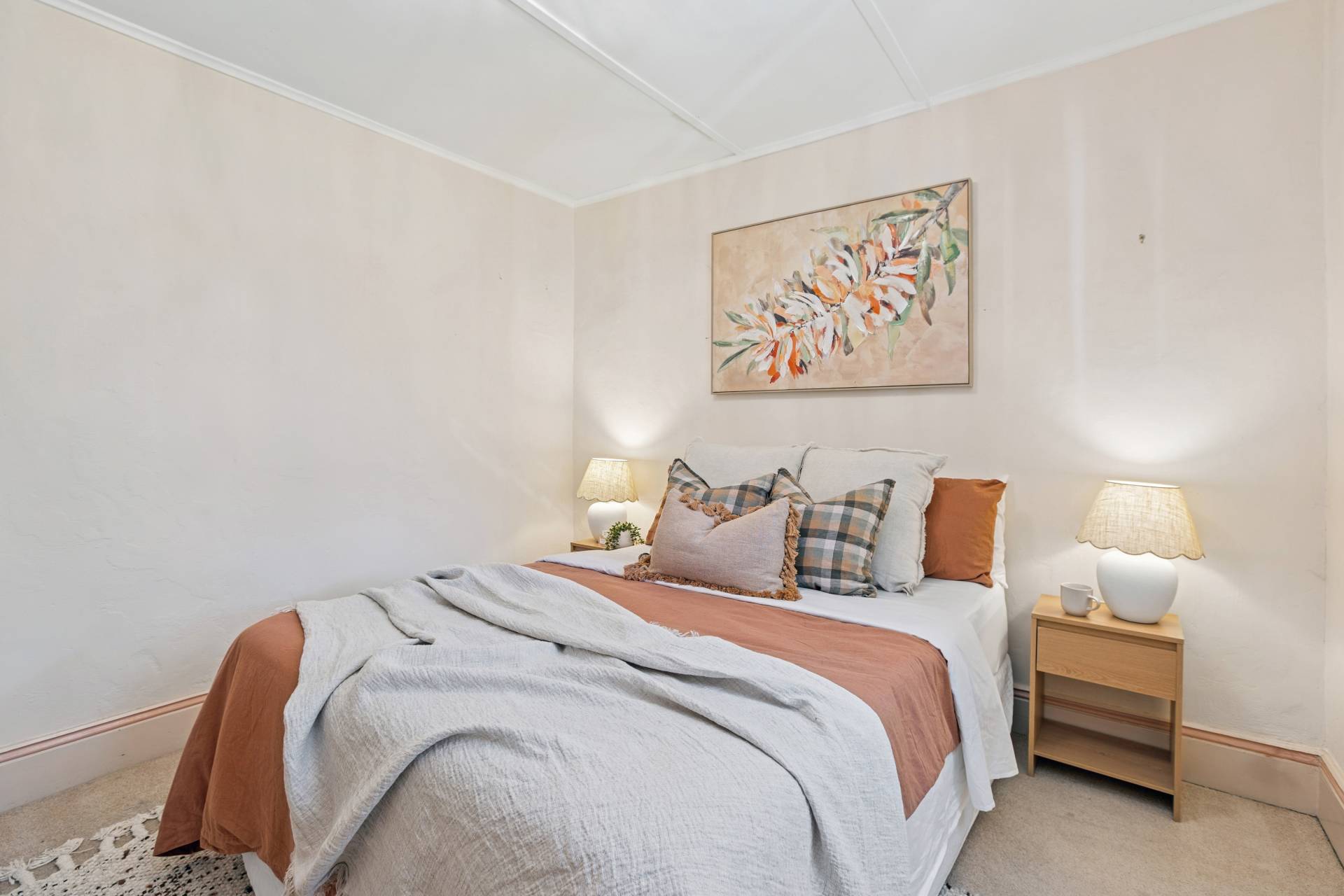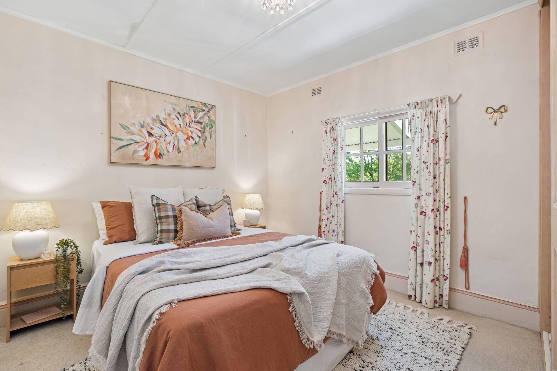 The master bedroom carries the romance of yesteryear, with built-in robes and the kind of calm that only historic homes can offer. Bedroom two also features built-in robes, creating comfort that meets practicality. The bathroom is pure vintage indulgence, an antique rolltop claw foot bath, French glass vanity lights, a heated towel rail, and a separate toilet complete this dreamy retreat.