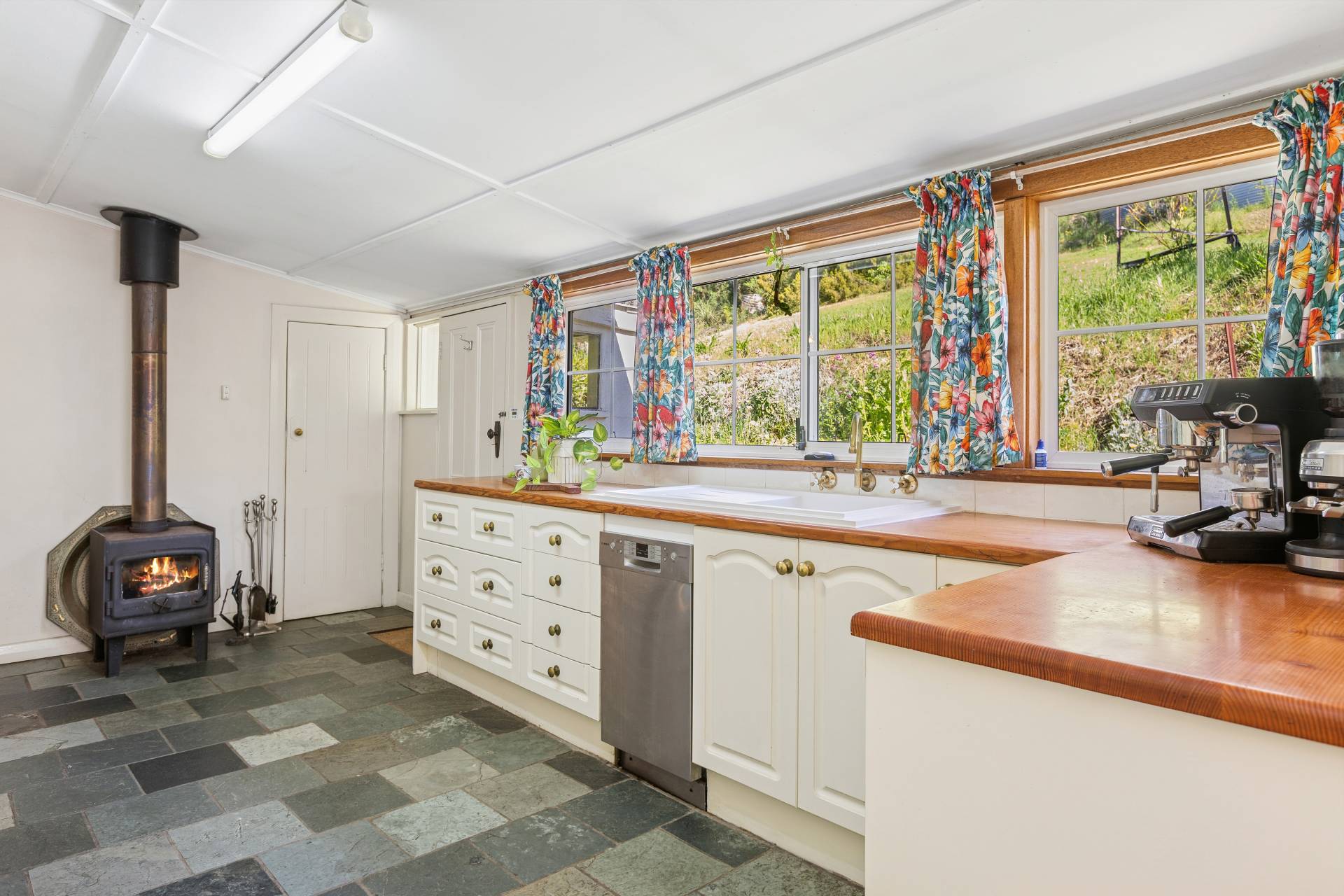 In the kitchen, history and craftsmanship come together. Oregon timber benchtops reclaimed from the Pt Adelaide wool stores meet solid marble, a stunning union of rustic and refined. Italian tiles shimmer softly in the light, brass taps accent the large white sink beneath picture book windows, and a Belling twin oven stands ready to inspire. Having a freestanding Nectre wood fire in the kitchen certifies you're in a country cottage and its warmth moves through the entire home. Slate tiles in a glorious green tone continue through to the dining room, where French doors open to breathtaking views and a gazebo ideal for entertaining those guests lucky enough for an invitation to enjoy such a place as this.