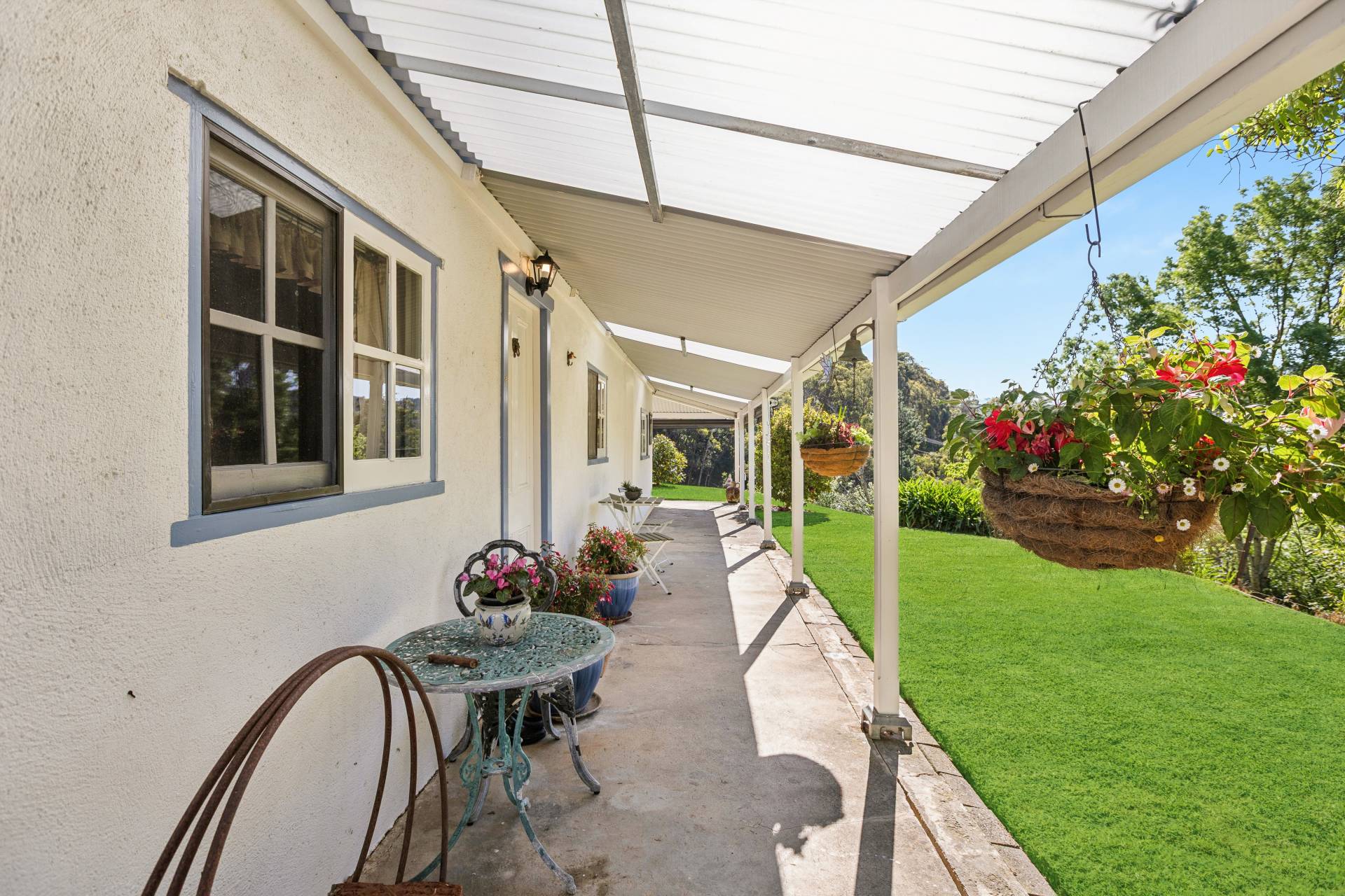 Here, wedge tailed eagles soar, flame brow finches, robins and kingfishers dart, kookaburras sing and echidnas are in residence. When the winds are bending the trees in the distance, the house is in a calm and protected position to admire all the action in the big gully views. An inspiring aspect to see the mighty Marble Hill house on the top of the crest, this is a rare serenity that words can barely capture. With lush lawns, fruit trees, and a paddock for small animals, this home offers a lifestyle that will touch the hearts of poets, artists and anyone who appreciates the absolute sound of nothing but nature.