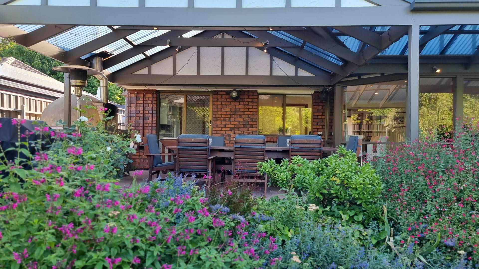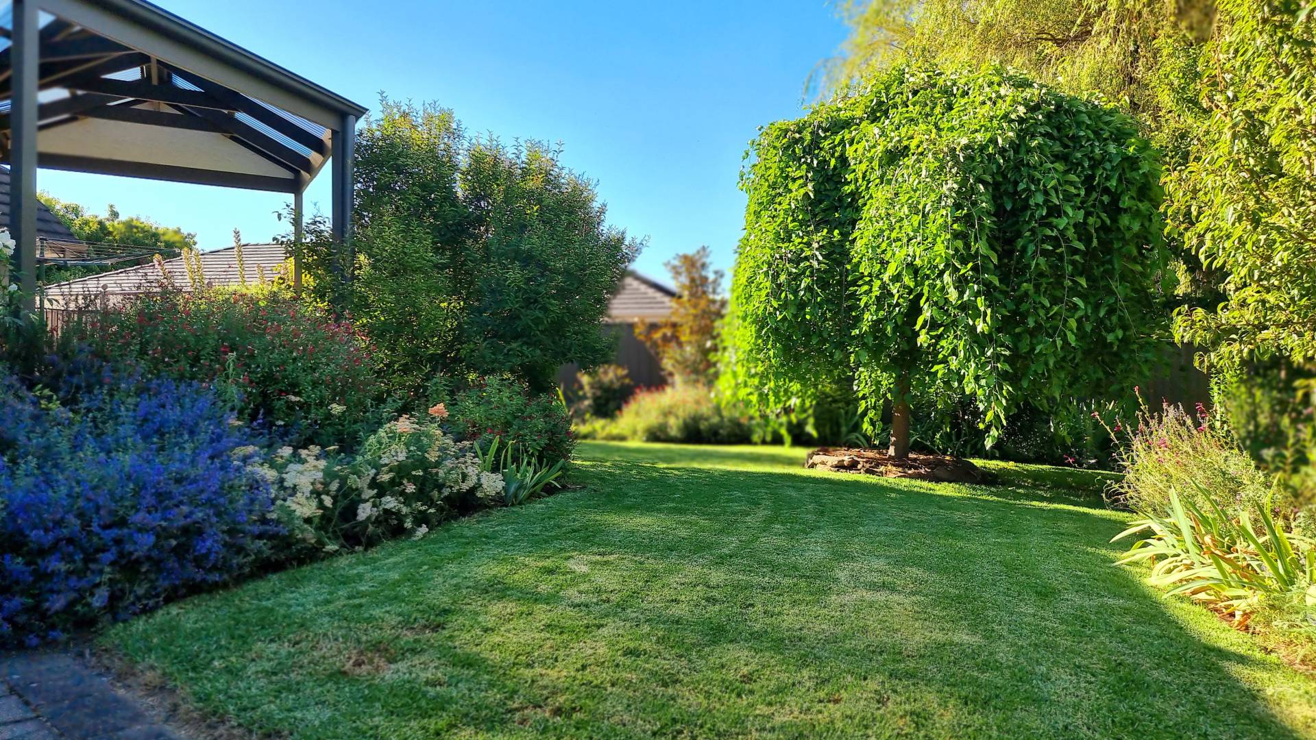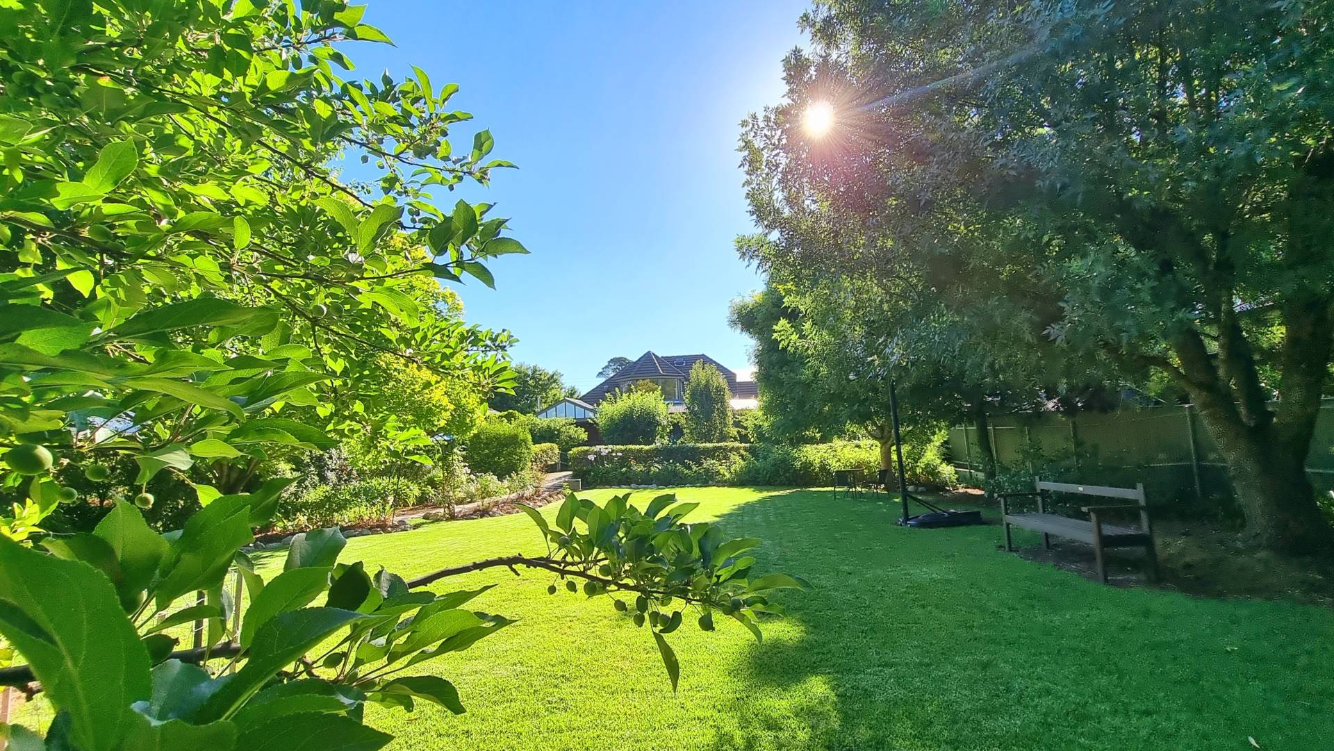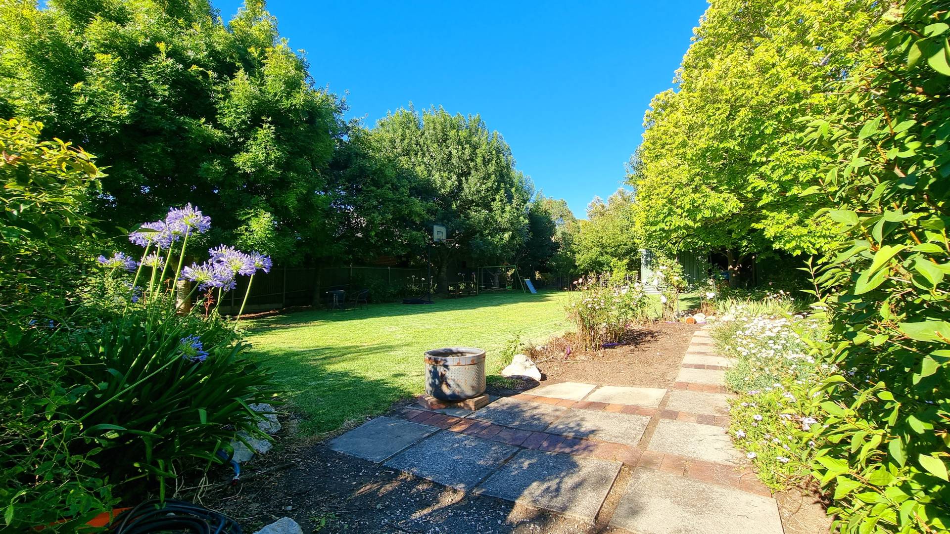 Within the fully fenced rear yard, it feels like a secret garden, crossing the timber bridge over the Iris laden Winter creek, meander around rose and bulb blossoming paths, under trees of Oak, Elm and Ash, pick some fruits of raspberries, plum, pear, nectarine, lemon, fig or mulberry, all to open up to a mini oval. Let the footy's fly and the cricket bats swing. Pets, trampolines, or simply lawn, you can make it as you wish - you have the room, which is such a privilege and hard to find these days.