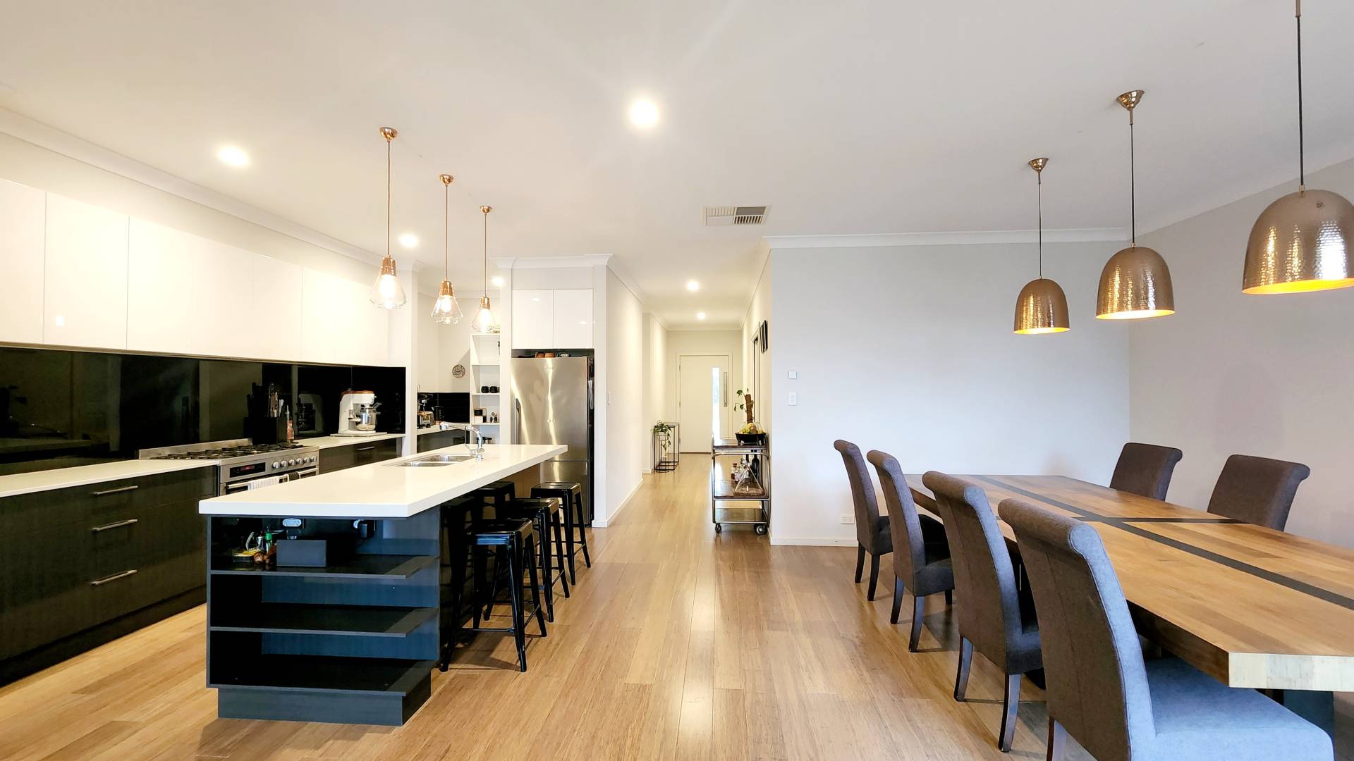 With a showstopping kitchen, offering 40mm stone island bench, walk in pantry, Westinghouse 6 burner gas cooktop with electric oven, Smeg dishwasher and soft close cabinetry, pass the home cooked meals straight over to the dining table that can comfortably seat 10.