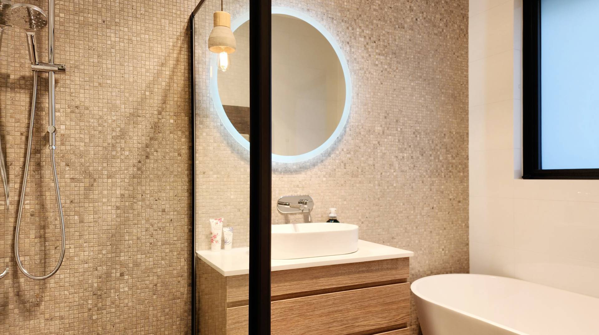 Listen, and you'll hear the sound of birds and song. Not from outside, but from the inbuilt speakers in the ceiling that create a calm, or if desired, a rocking beat of your choice in the living spaces, bathroom and alfresco areas.