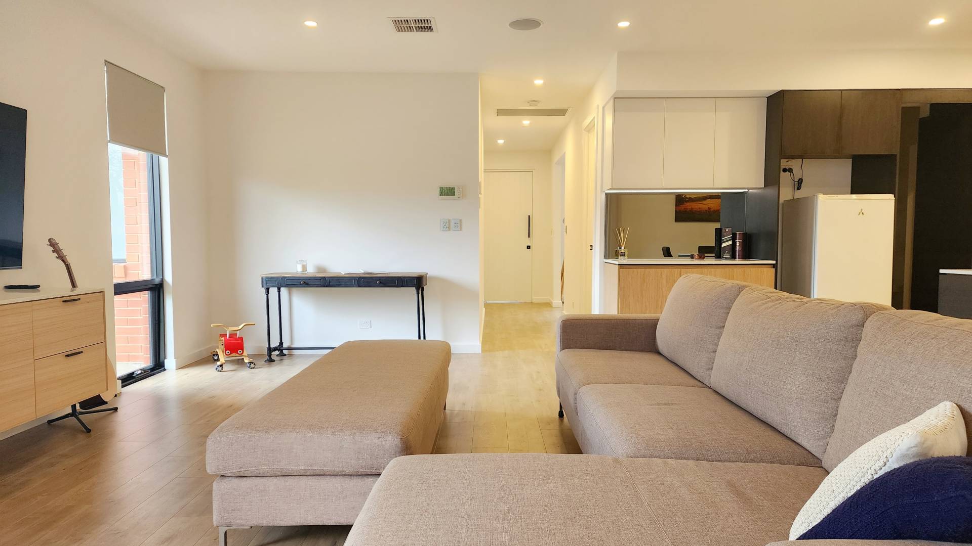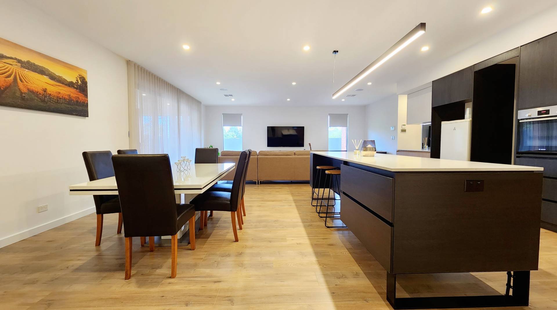 Instantly, you know you're in a home that has had attention to detail throughout its build journey. Silicone joins along tops of skirting boards, modern square set finish where the walls meet the ceiling, gorgeous 200mm wide commercial grade engineered timber flooring, oversized 2.4m doorways and a 2.7m ceiling throughout; this is just the beginning.