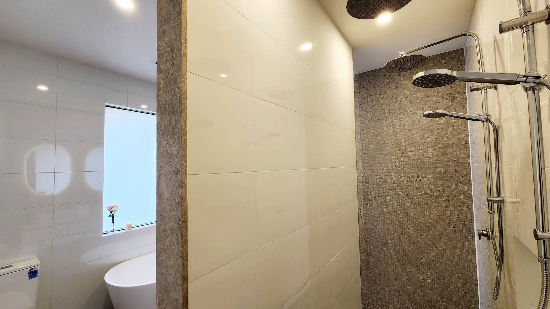 The generously sized master bedroom with plush carpet has a spacious walk-in robe with automatic sensor lights as you walk in. Through to the ensuite and wow, this really is a place to enjoy unwinding at the end of every day. Large bath, double shower, double basins with backlit mirrors, cool or warm lighting and a stunning choice in tiles.
