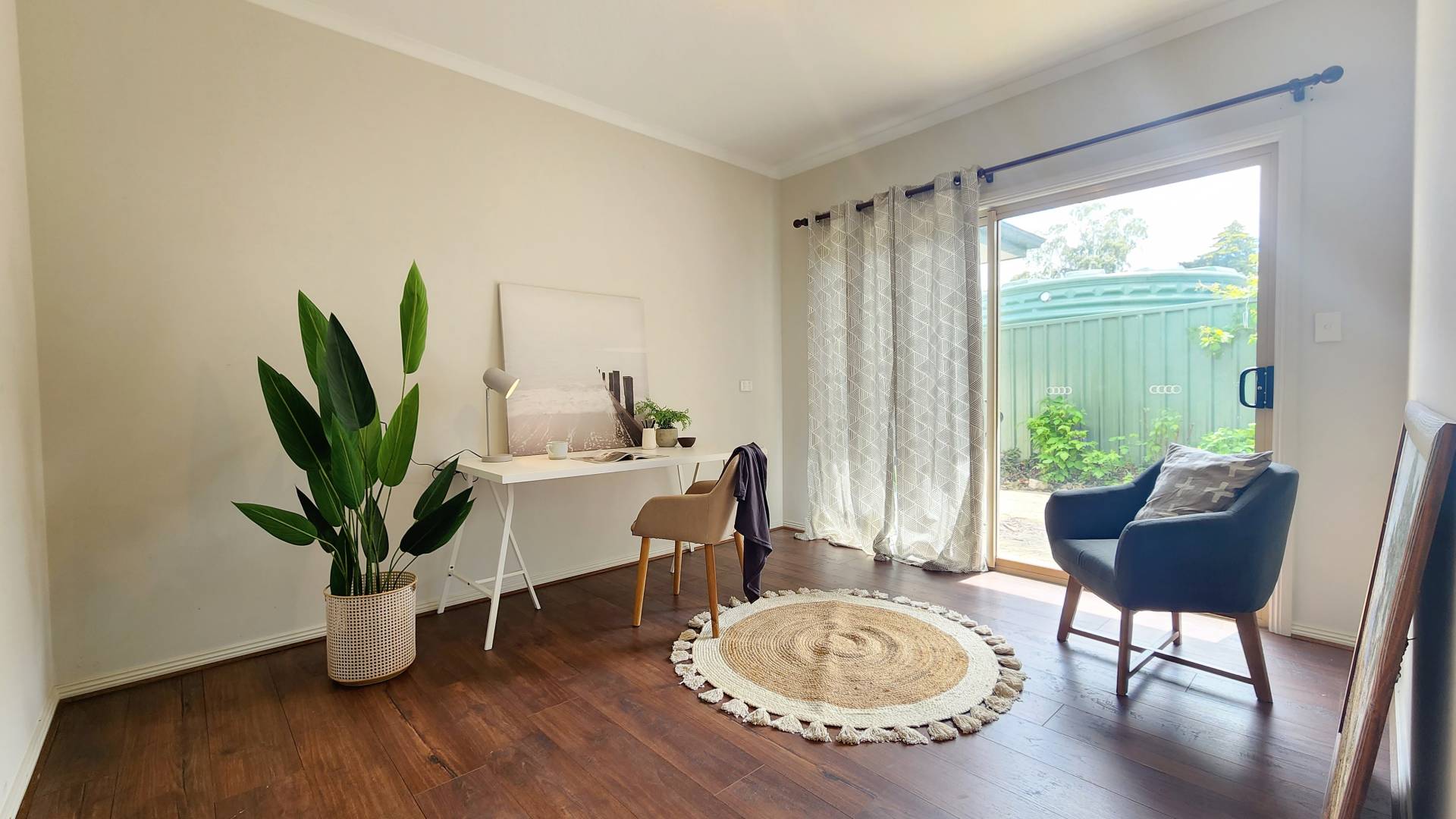 With a hobby room in mind, bedroom 4 has laminate timber flooring, easy access from the shed via a courtyard and power points above bench height on the wall, ideal for servicing appliances such as sewing machines, power tools etc.