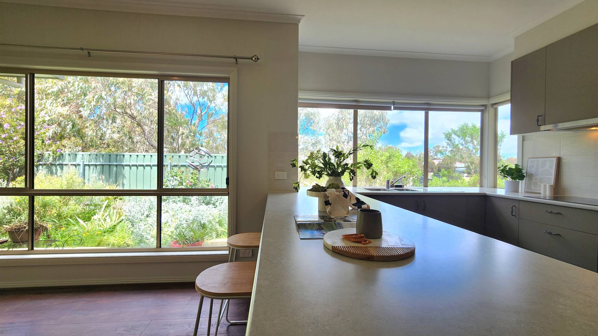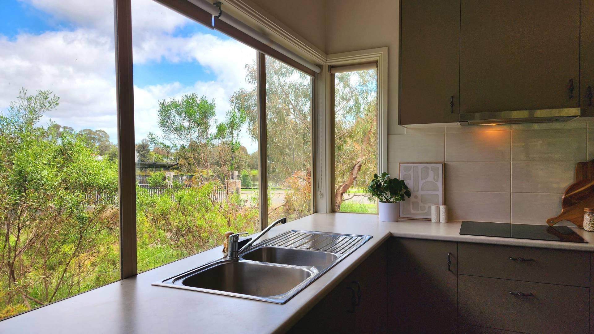 There's no lack of room in the kitchen, with benchtops space a plenty and an enormous walk in pantry. The views from the kitchen overlook a large creek, mature trees and a family of blue wrens.
