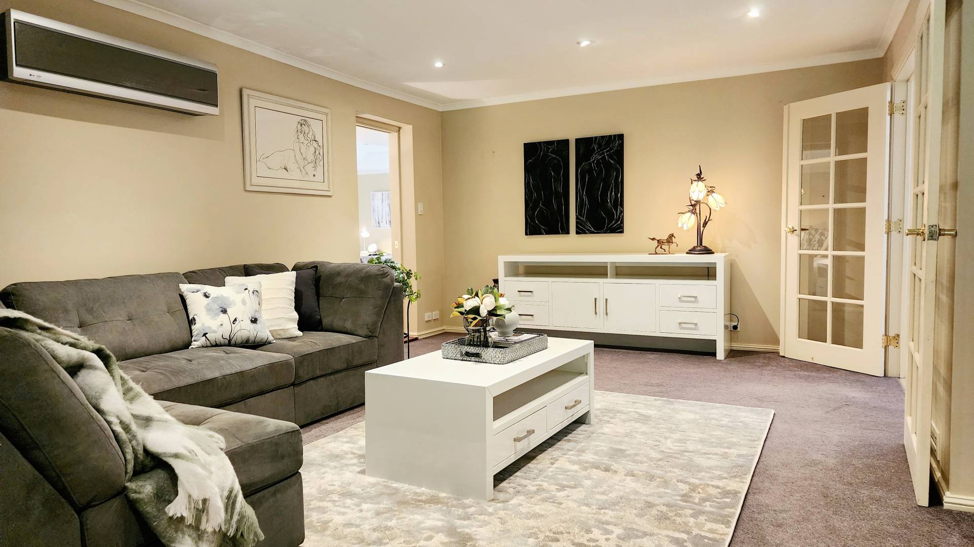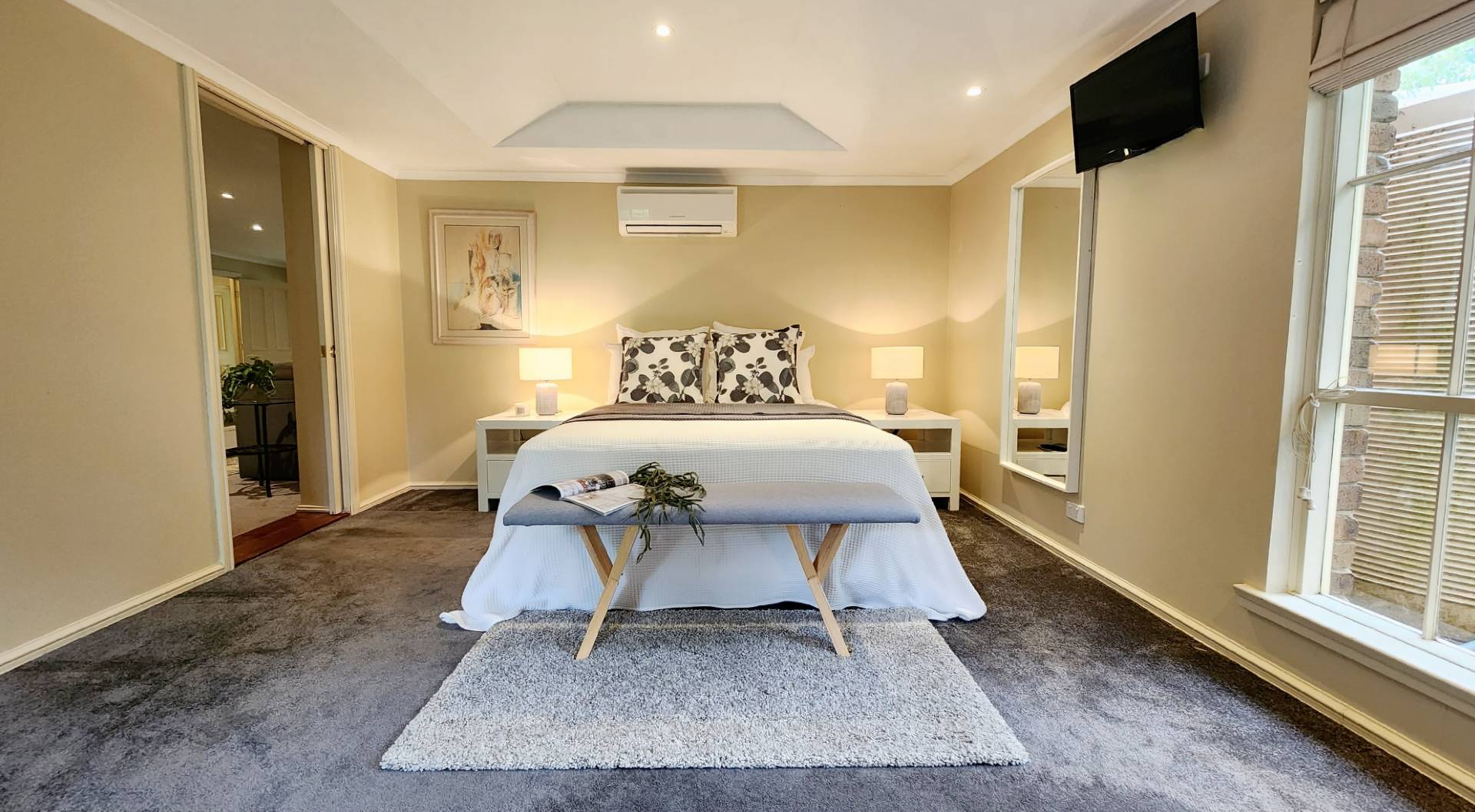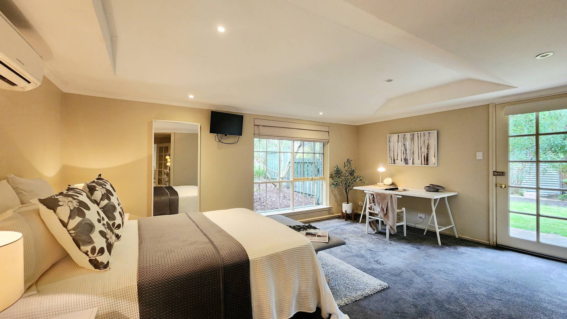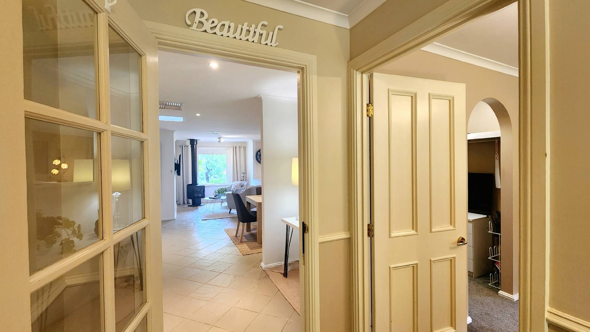 There's a choice of two master bedrooms (one with ensuite and walk in robe) plus a 3rd bedroom, with built in robes. A home far greater in size than possibly originally expected, there's an enormous living room/second TV room that adjoins an additional wood fire complemented sitting room, all of which can be closed off with internal doors, creating a fully flexible floorplan.