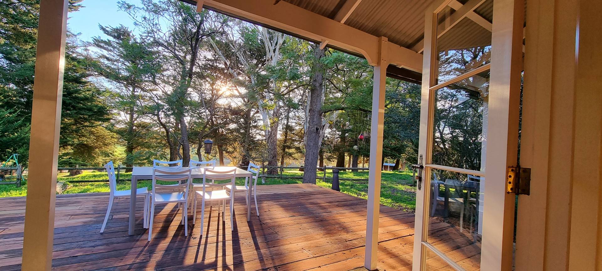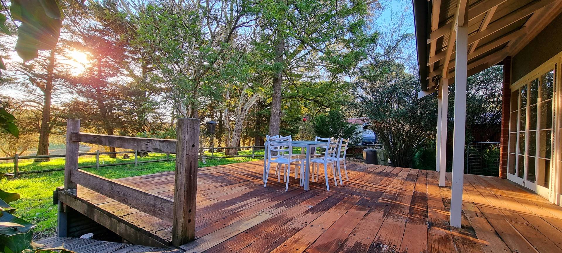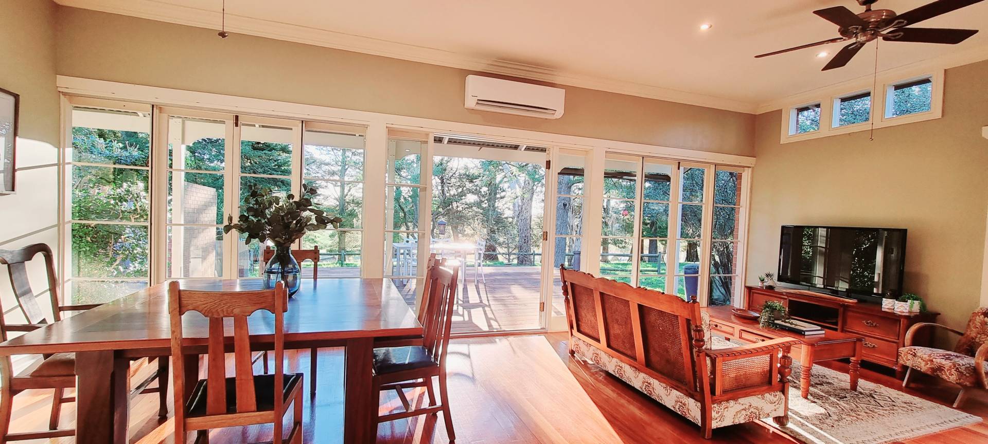 When spring comes, open the French doors... wine, dine and lounge from a magnificent open plan space that expands out to a solid hardwood deck, distantly bordered by mature pine trees over grassy lawns and watch the neighbours horses drink from the trough.