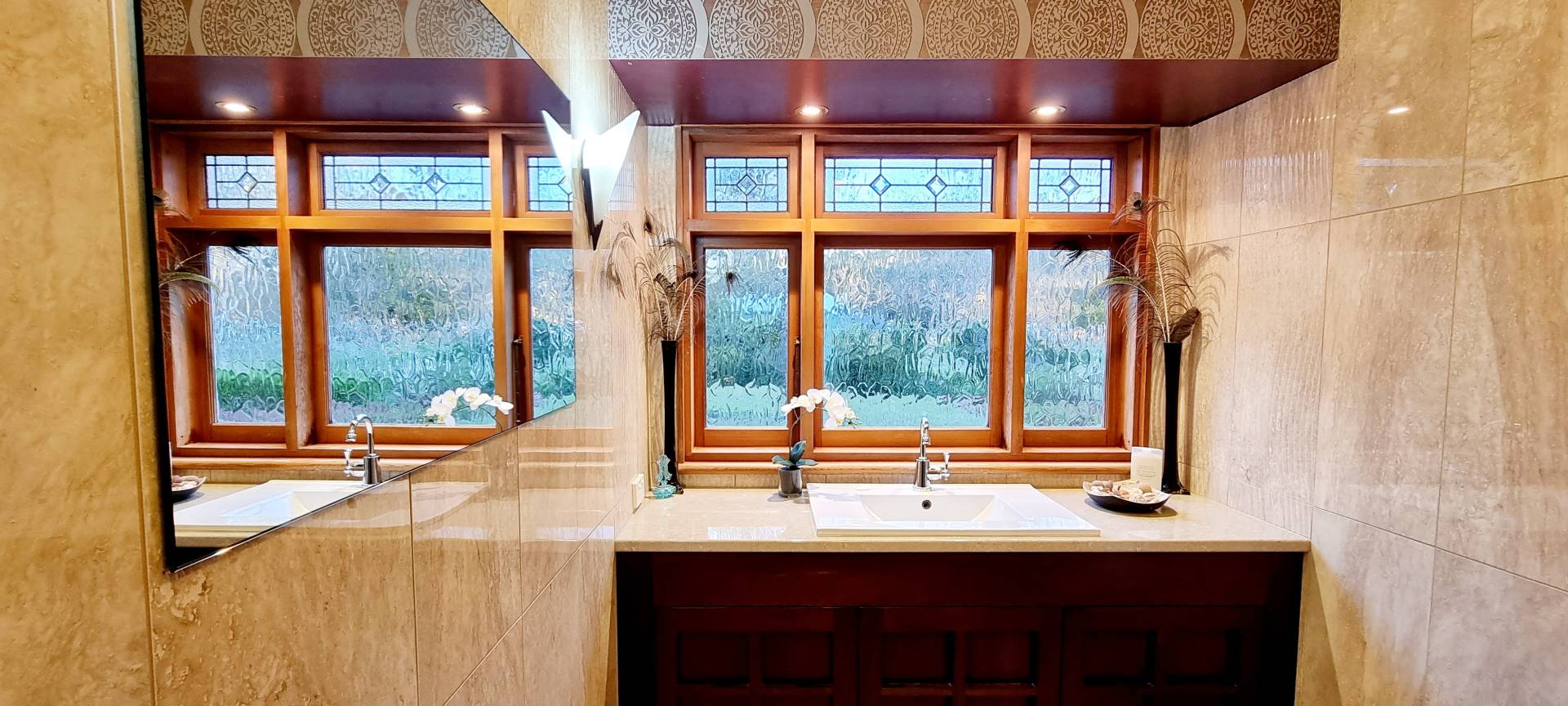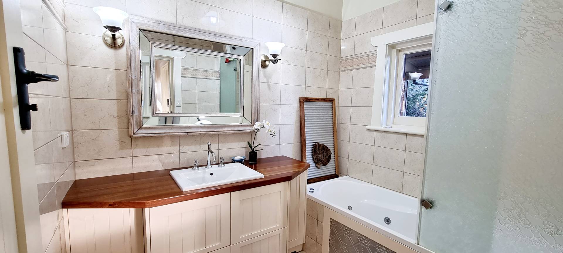 Both bathrooms are uniquely stunning, where every evening the light reflects throughout the room taking on a magical dance and the therapeutic spa bath is a simple joy.