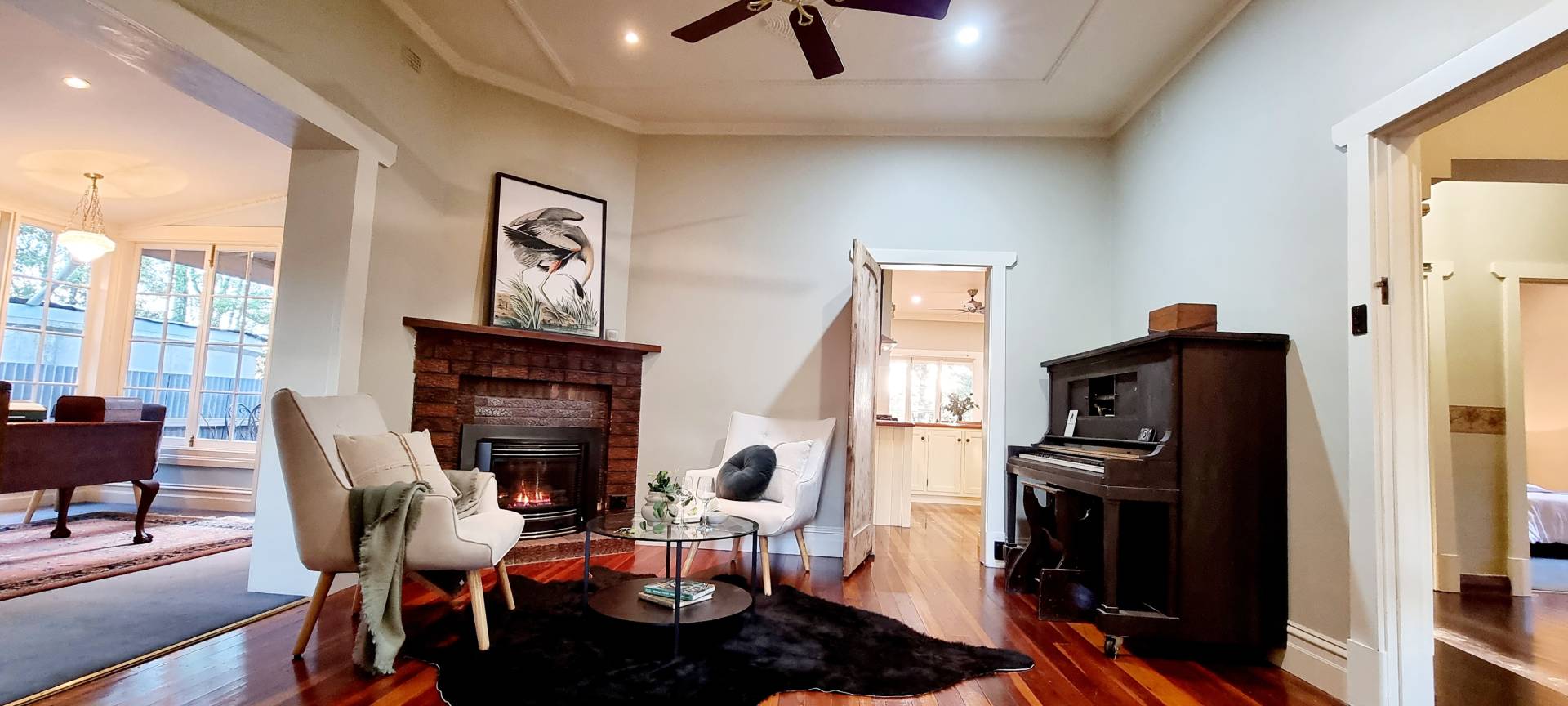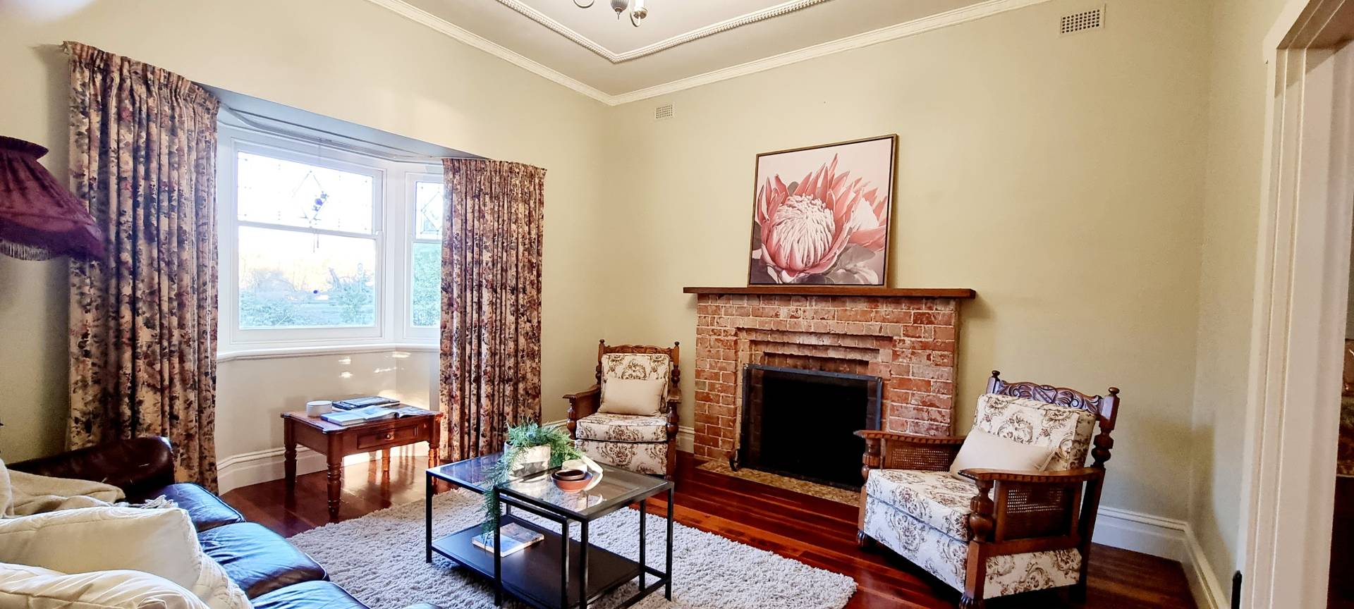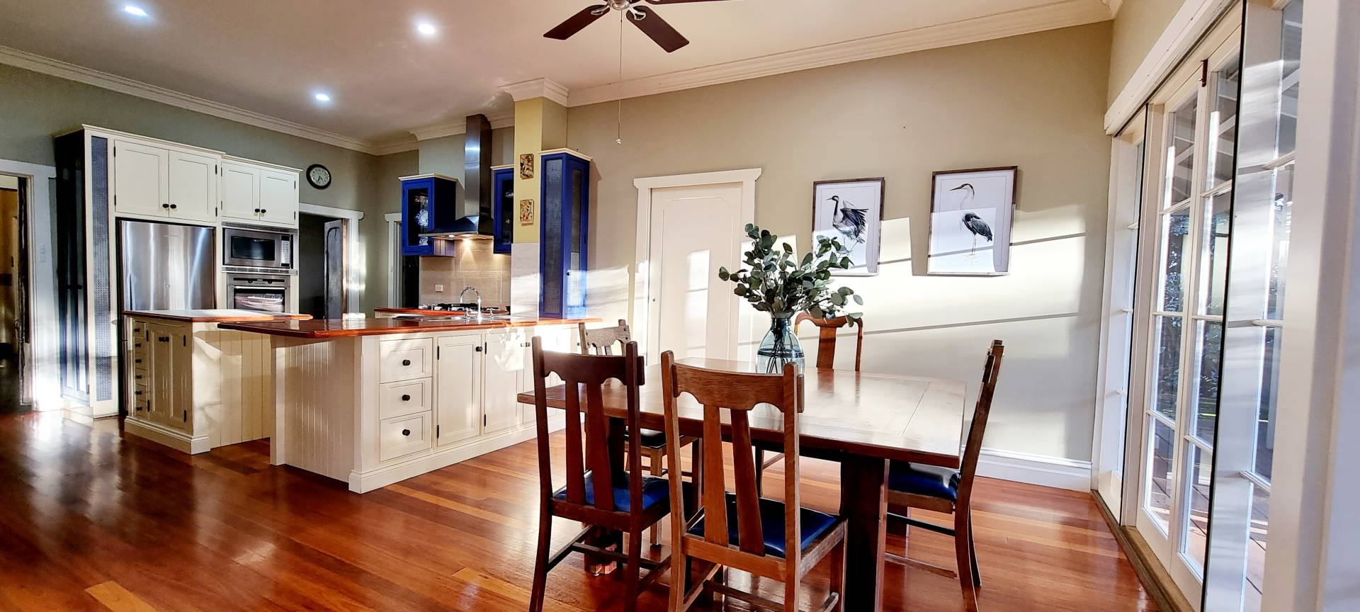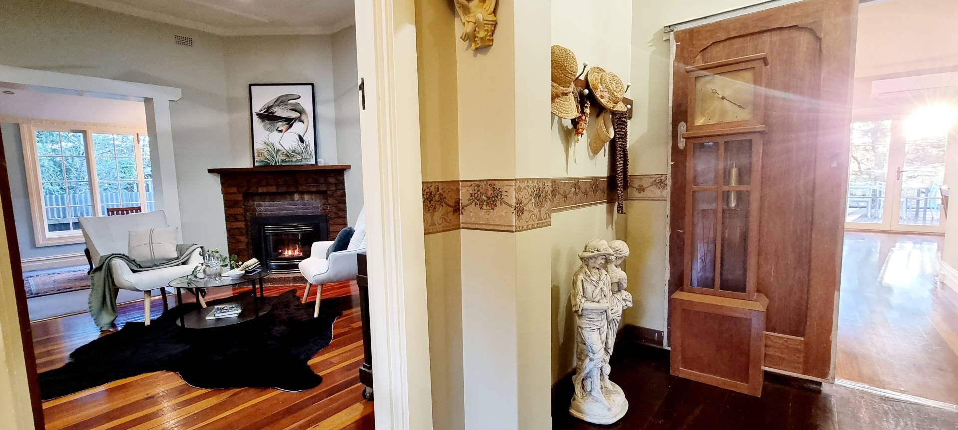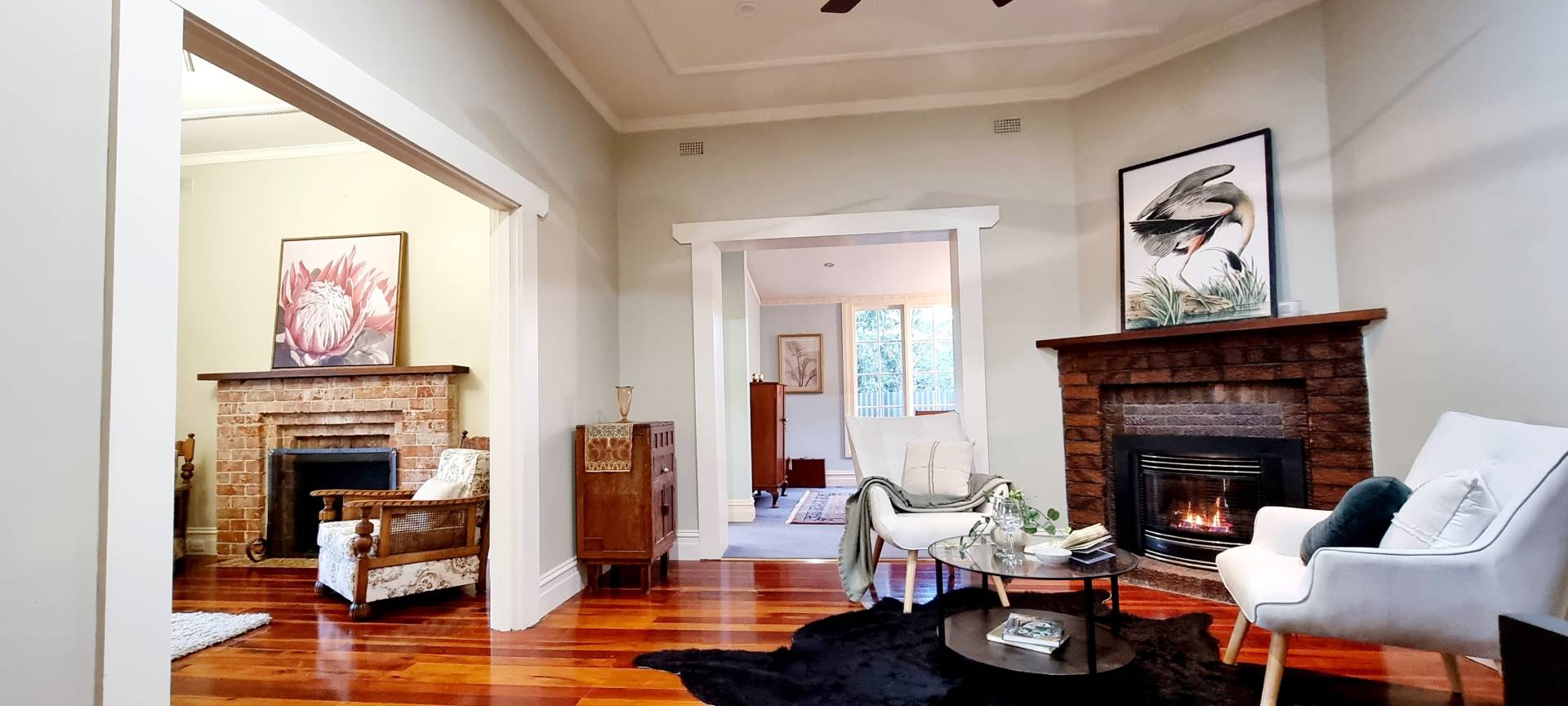She's a grand lady, with 10ft ceilings with ornate plaster in every room, a mix of Jarrah floorboards and vintage inspired carpets in the original part, opening up into a light filled spacious extension where here we'll find a fabulously well equipped country kitchen offering masses of storage, an AEG Pyrolytic oven and gas cooktop suitable for BBQ plate cooking.