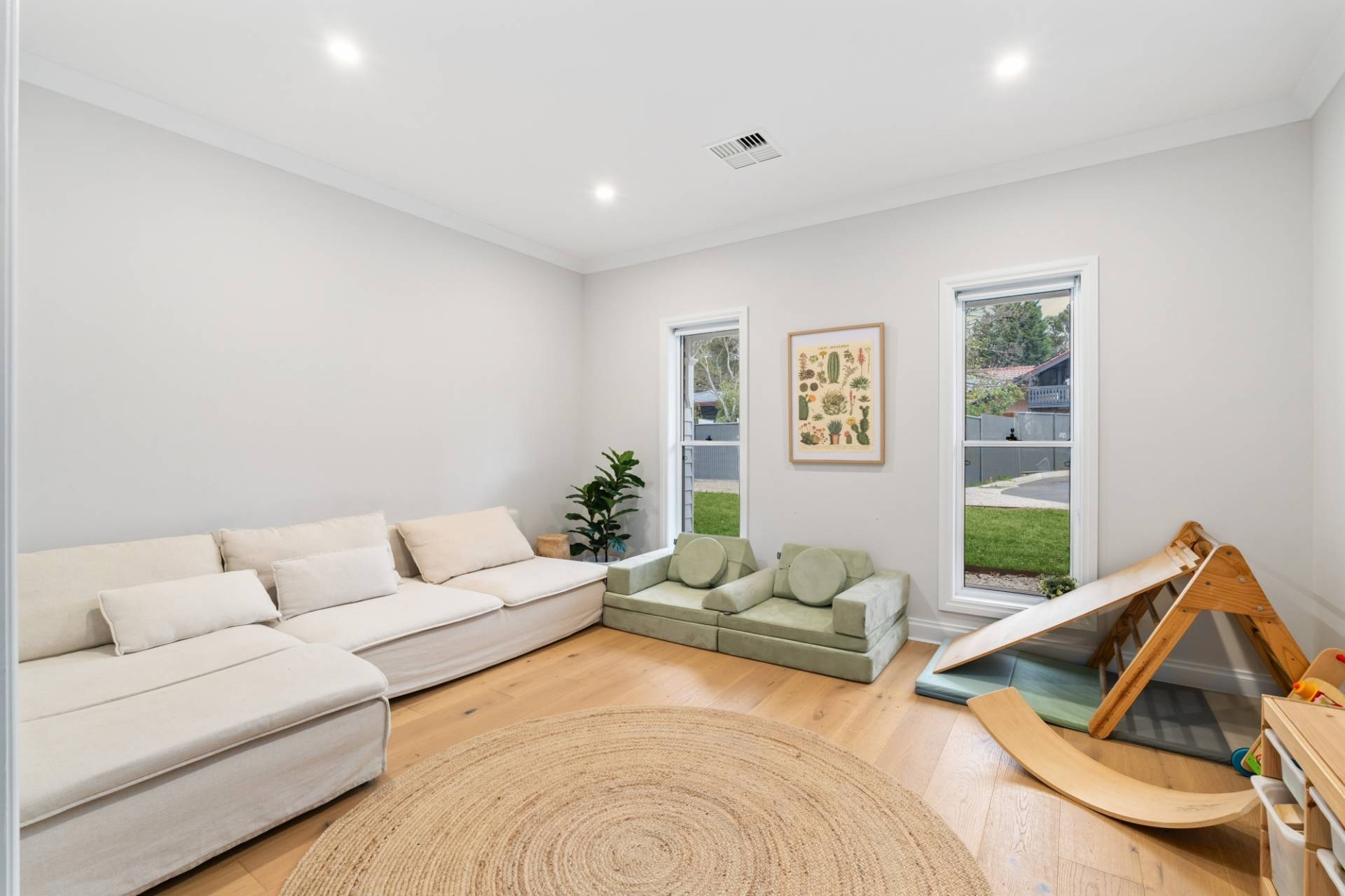 The open plan living room is multifunctional, easily adaptable to furnish as you wish - large or small dining table, TV or no TV, any layout will work. A second living room, separated by cavity sliding doors doubles the primary living space or creates a new one, much like the office room.