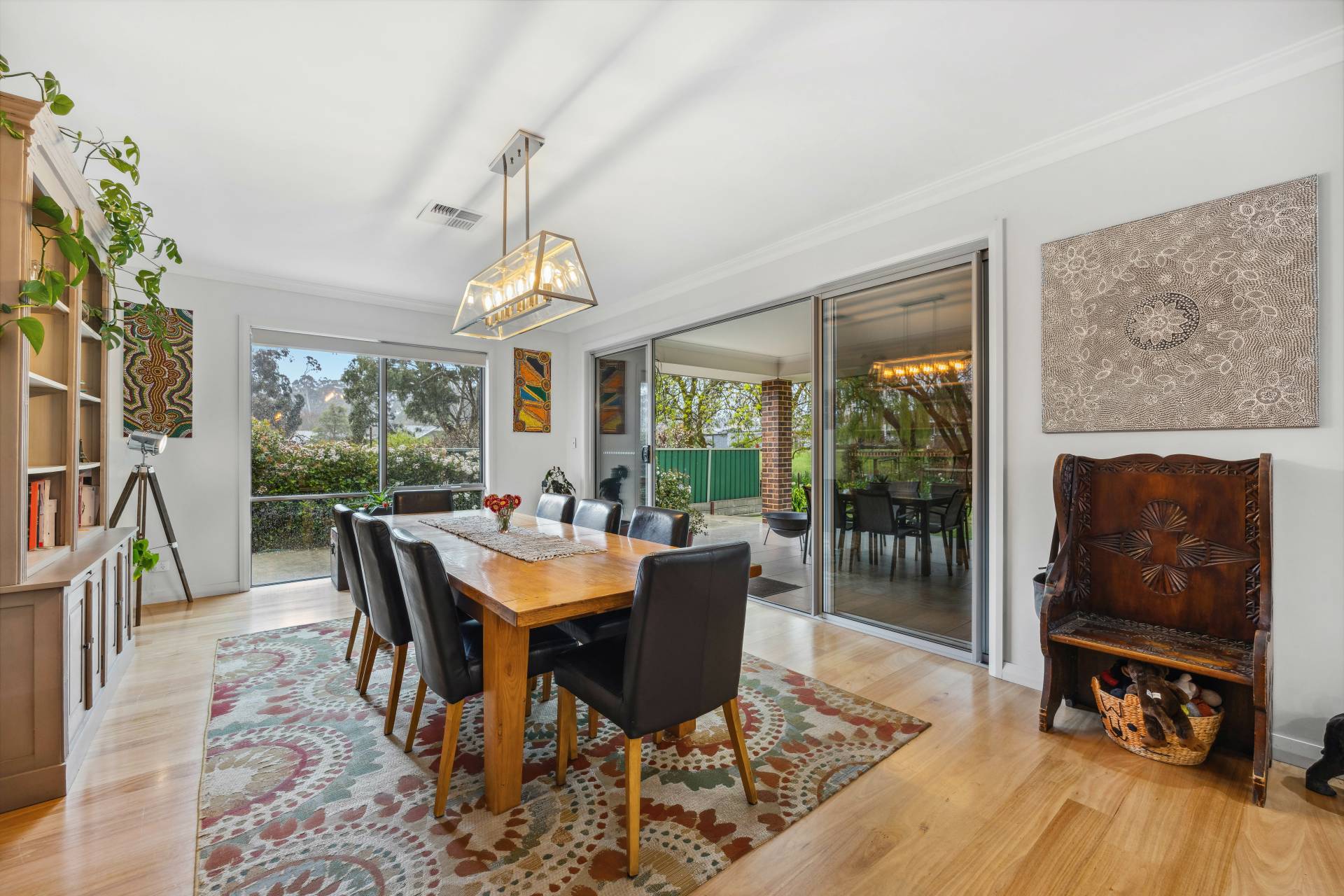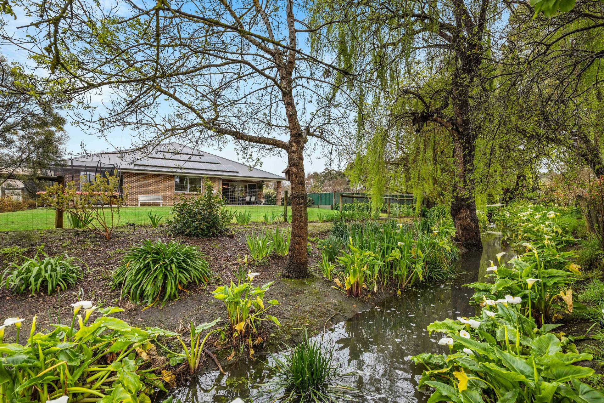From the dining and living rooms, there are beautiful views of the level rear yard, fully fenced for dogs of any size. A thriving creek full of frogs and plants belongs to this property, ready for adventure, exploration and enjoyment to delight young and old.