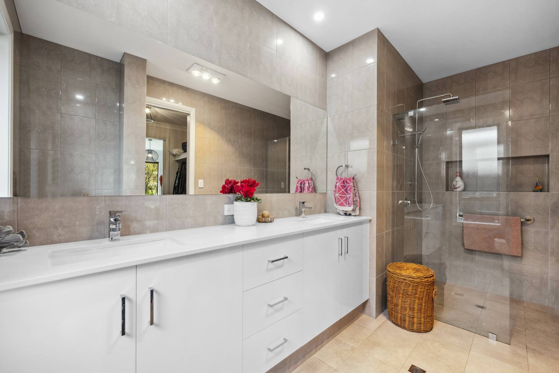In its' own wing, the master bedroom captures these lovely creek-side views and 'wows' with a huge walk-in robe and spacious ensuite with double basins.