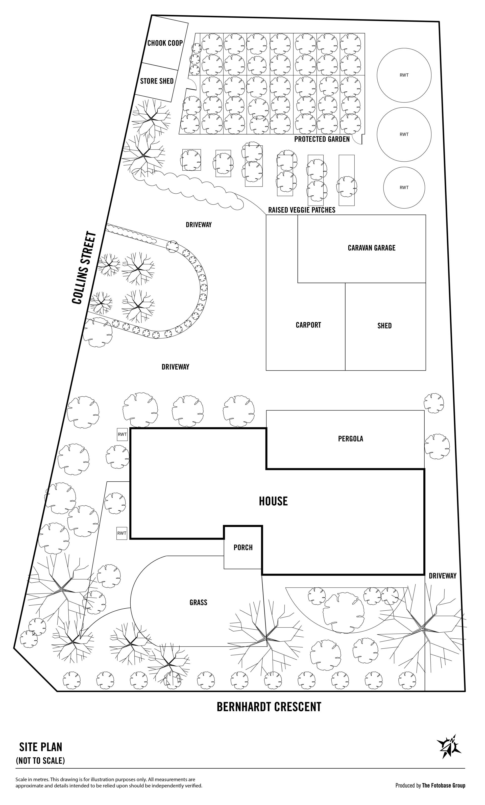 Current fruit and citrus trees consist of Feijoa, Miniature Peaches, Jonathon Apples, Peacharines, Apricot, Persimmon, Fig, Lemon, Lime.