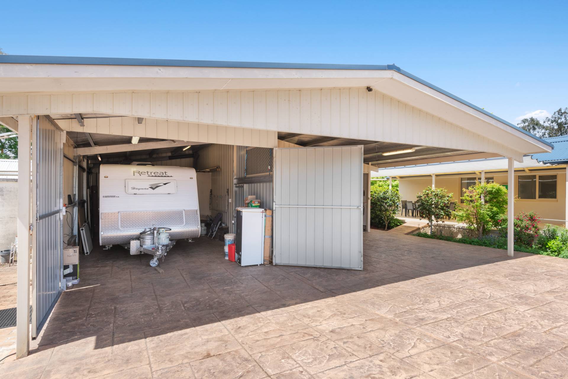 The shedding here, being a residential property, is certainly impressive, consisting of workshop with power points galore and ample storage, a dedicated caravan shed with 2.93m clearance and a double carport for undercover workspace. The drive in, drive out sealed driveway is perfect for reversing the caravan or trailer into these spaces.