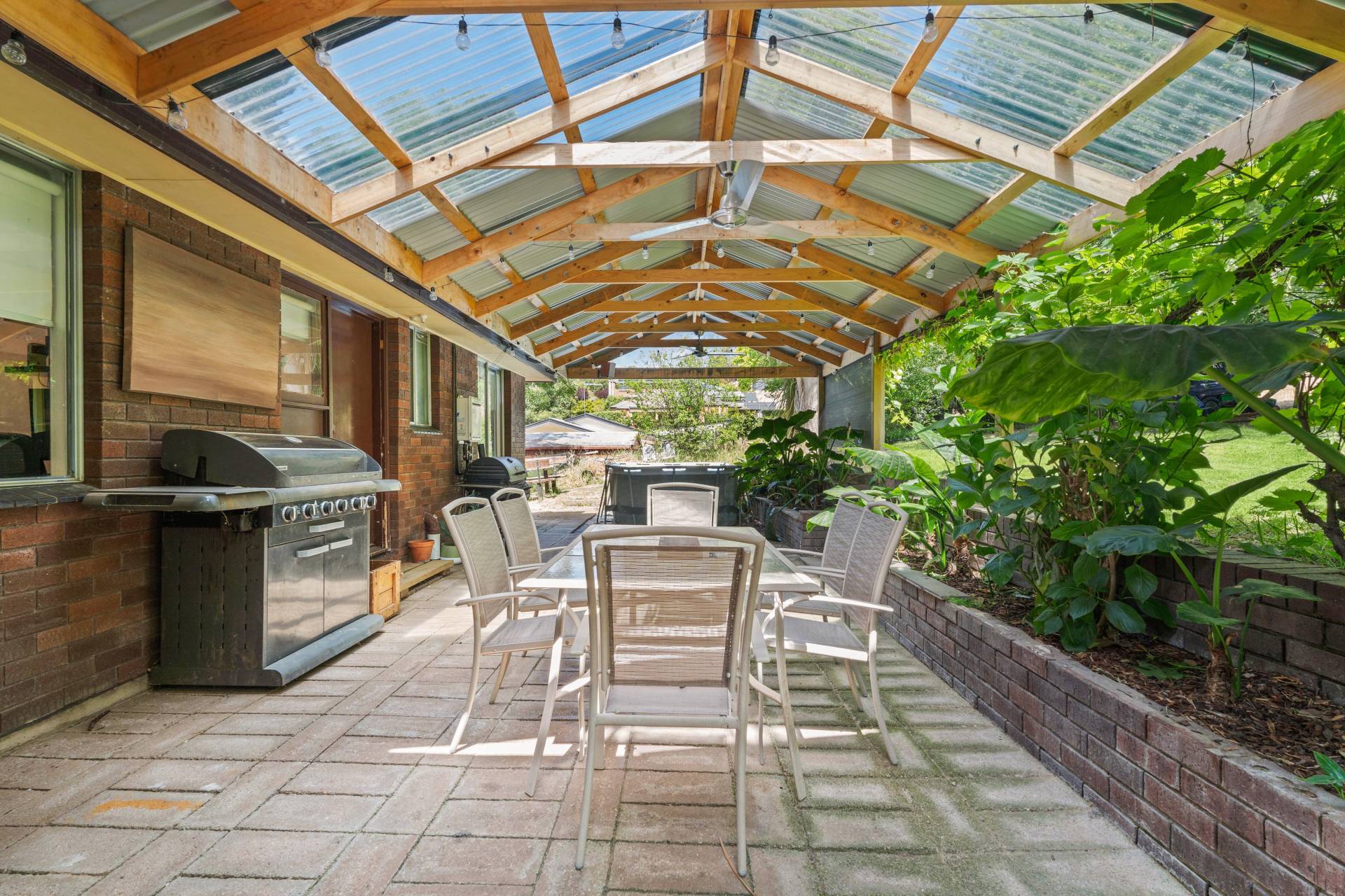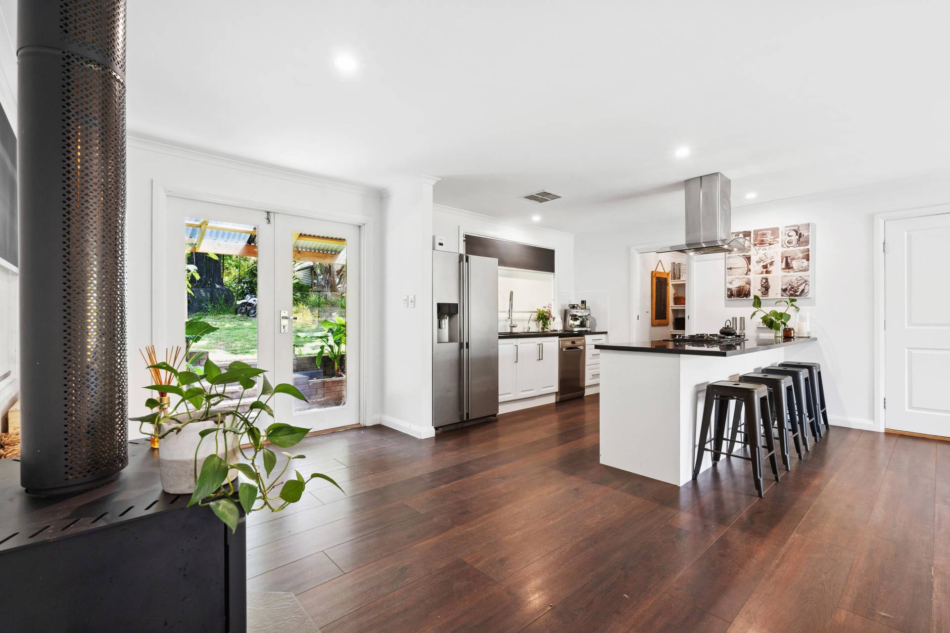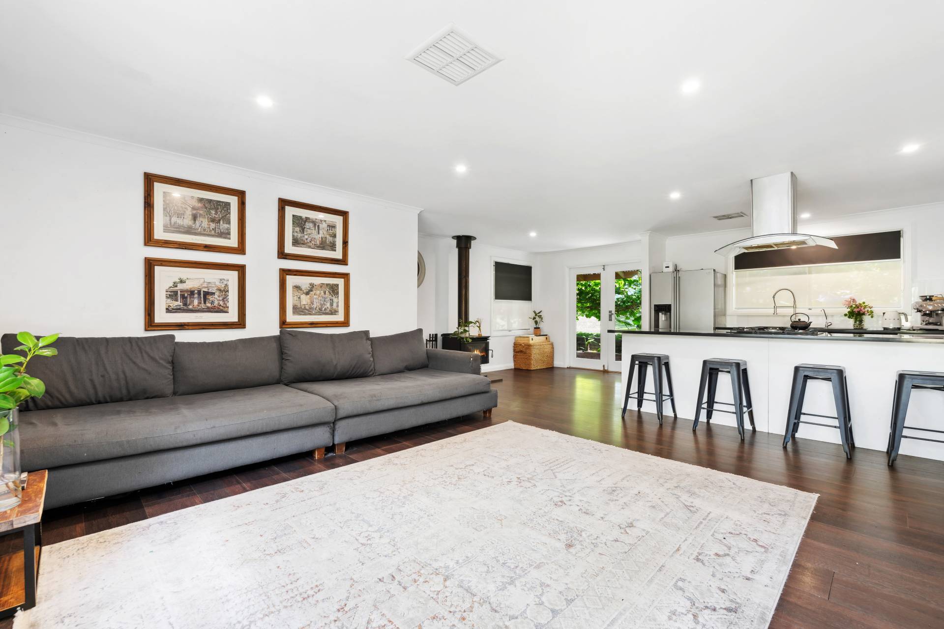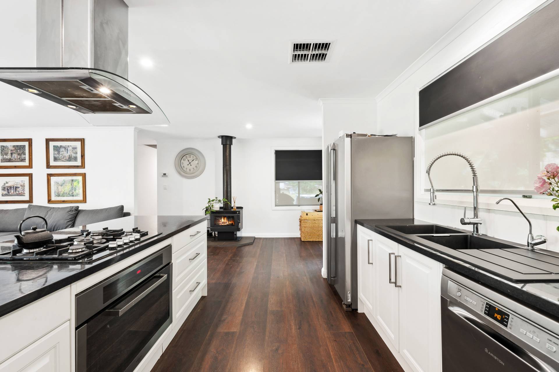 Over the years, since it was built in 1976, improvements have seen the addition of a modern kitchen with walk-in pantry, ensuite and a huge outdoor entertaining area under a pitched roof pergola. There's a powerful 10kw ducted reverse cycle air conditioning unit that's more than enough for heating and cooling all year round and the wood fire adds to the ambience during those Winter evenings.