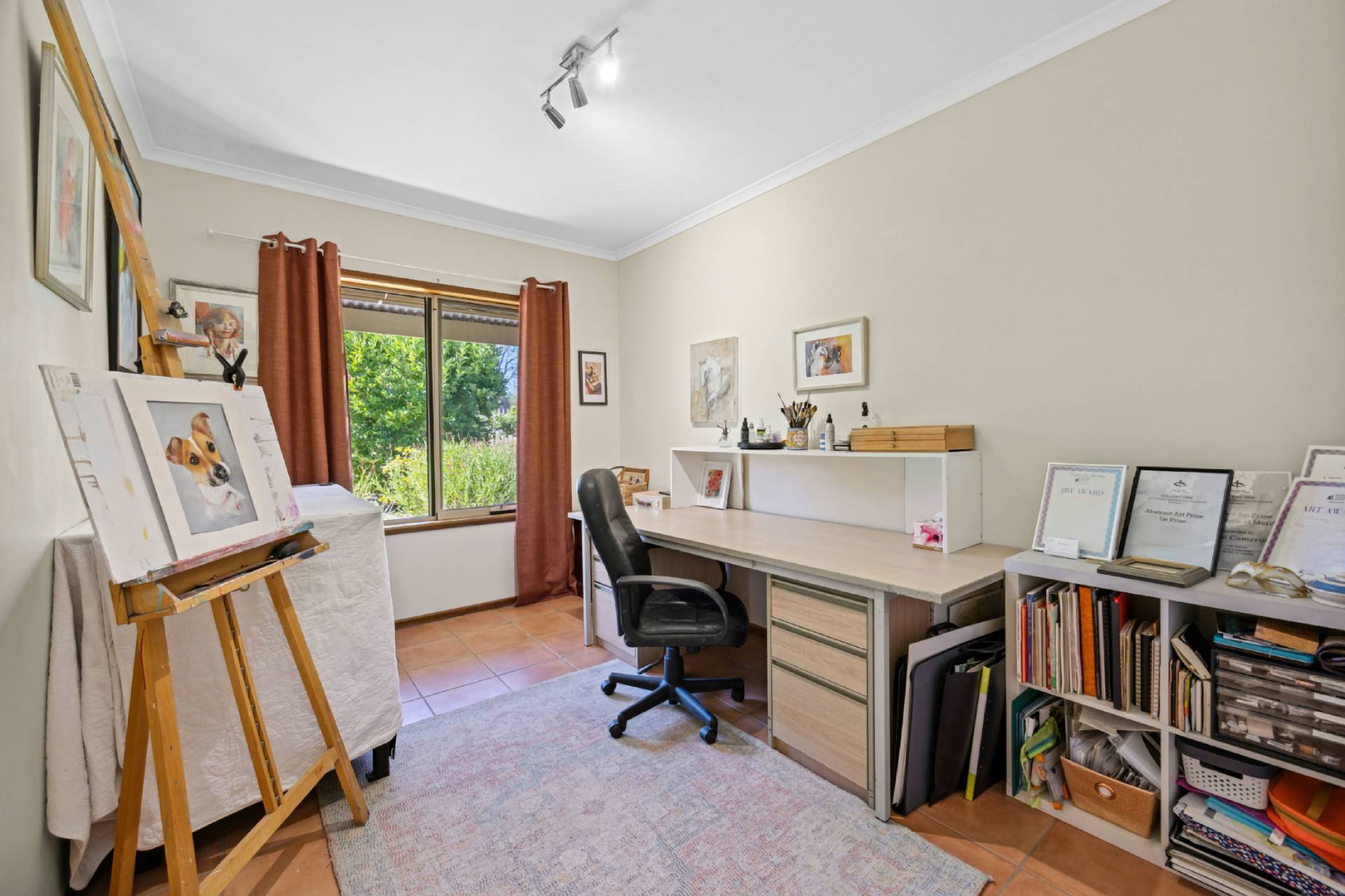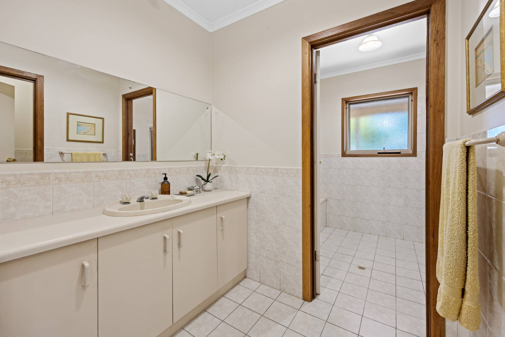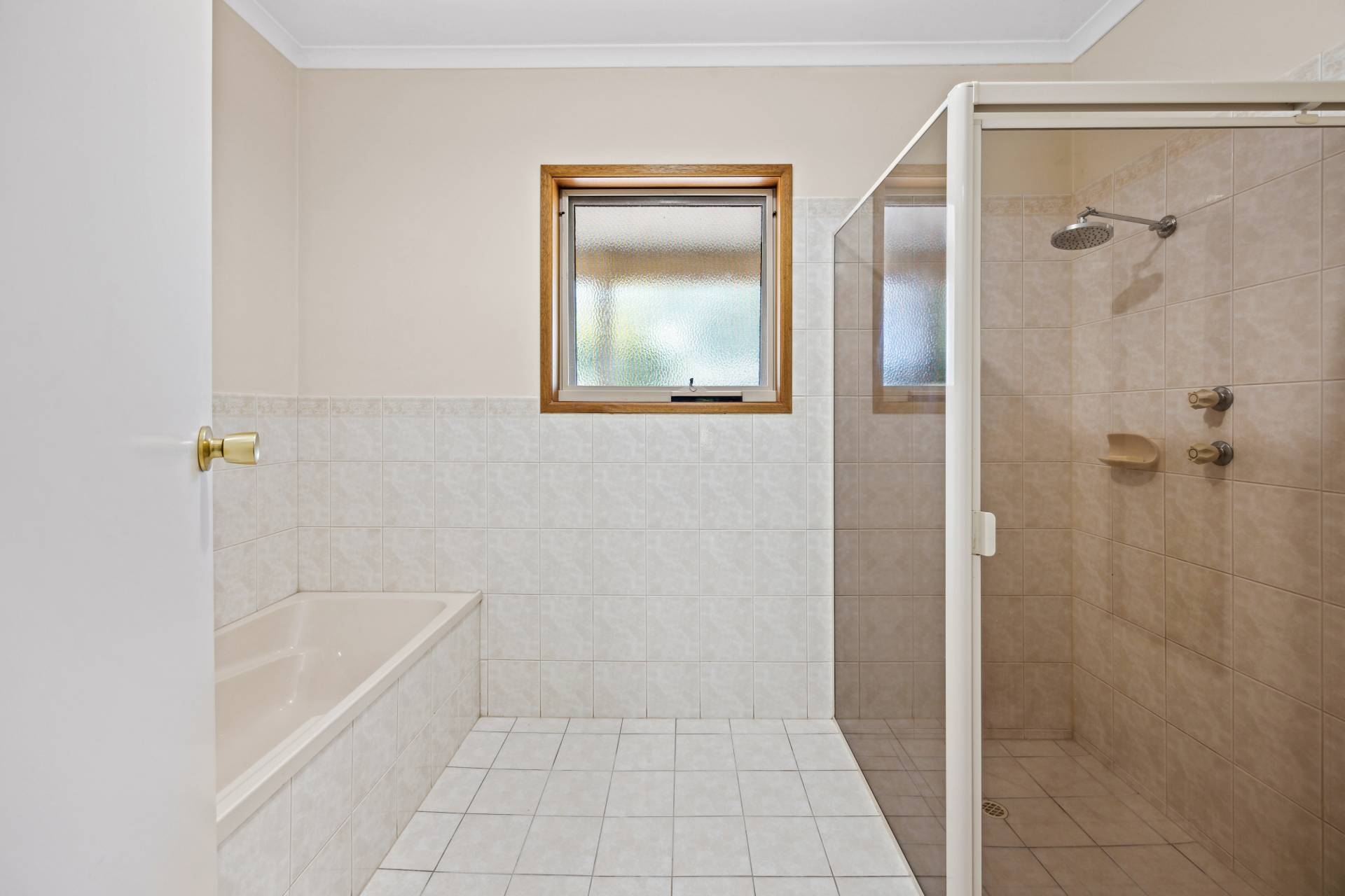 With 4 bedrooms, or 3 plus a study, the master bedroom has an ensuite and walk in robe and the main bathroom is a large 3-way with bath and separate toilet.