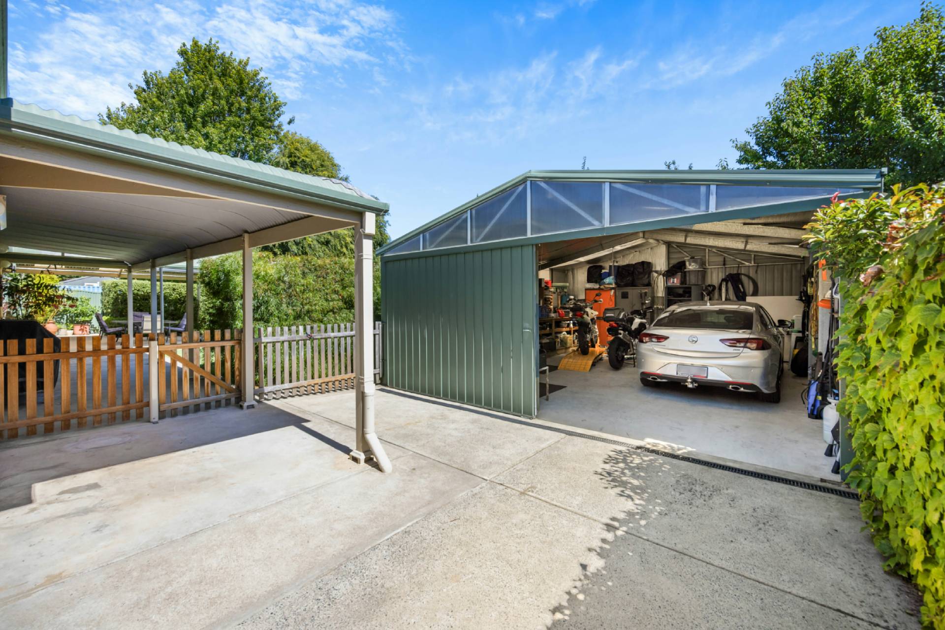 In addition to the carport with electric roller door, there's a double shed with concrete floor and power. Fitted with insulation under the roof and partial walls keeps condensation away and aids in a milder workspace during the warmer months. It's worth noting the work benches are able to stay with the sale of this property too.