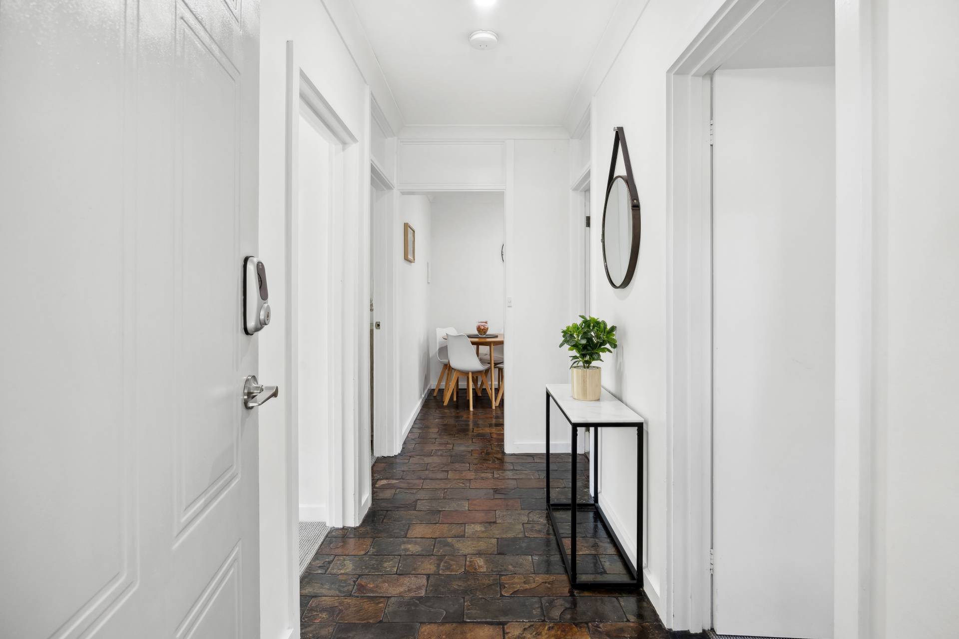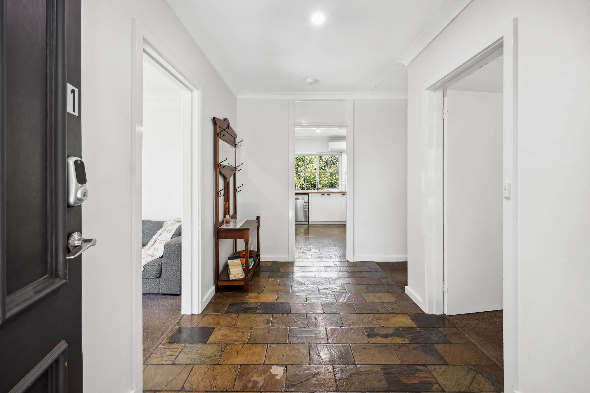 A clever modification, where a false wall in the hallway and a second kitchen forms its' current usage as two independent units, but it could easily be converted back into one family home.