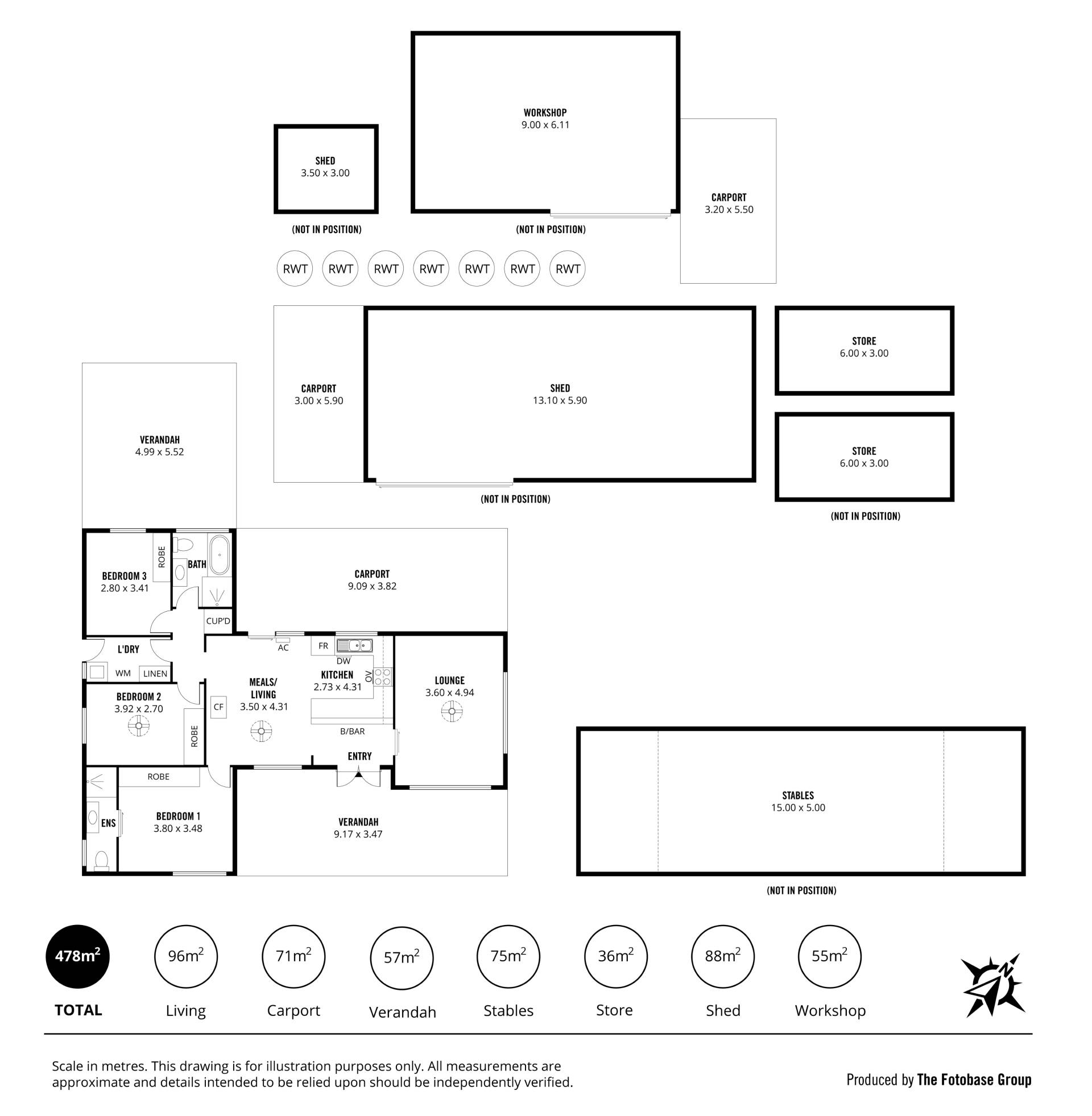Shedding is most impressive, more than enough to store floats, boats, campers and cars, or make ideal workshops with concrete floor and power.