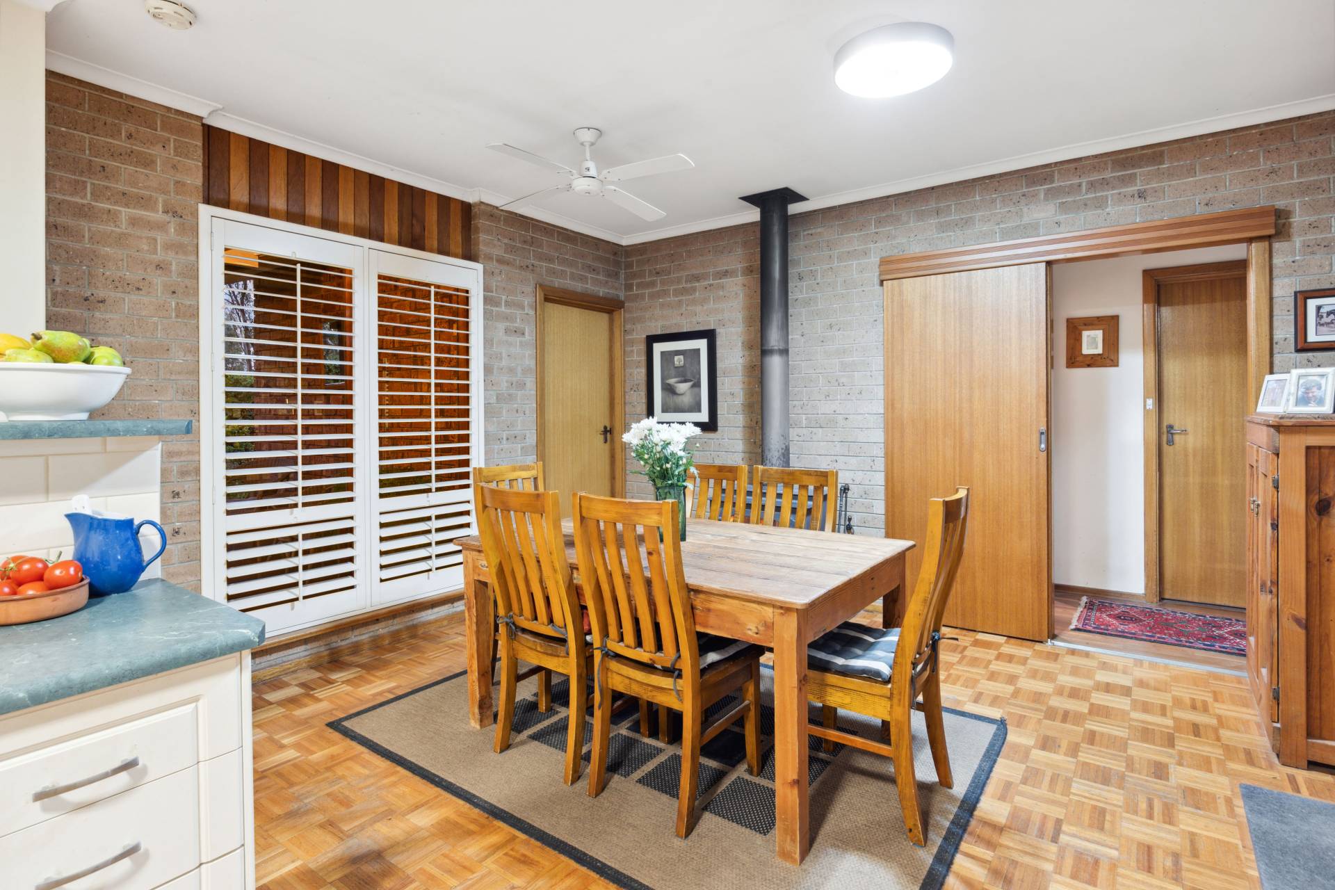 And what a lovely, cosy home this is. Being of double brick construction, she's solid and well insulated. 3 bedrooms, 2 renovated bathrooms and a large, central kitchen with gas cooktop are the beginning of the lovely features that make for a 'feel good' country home. The wood combustion heater roars in Winter and A/C + fans cool in Summer. Parquetry and timber flooring add to the warmth and complimentary white plantation shutters are on every window. The pretty living room is that perfect place to rest after a day with the animals.