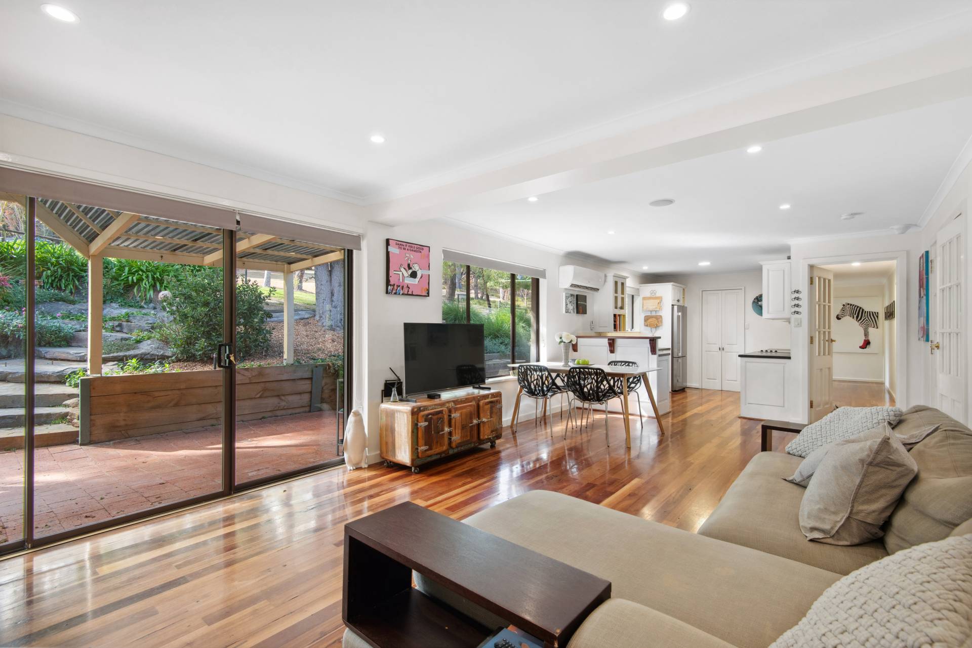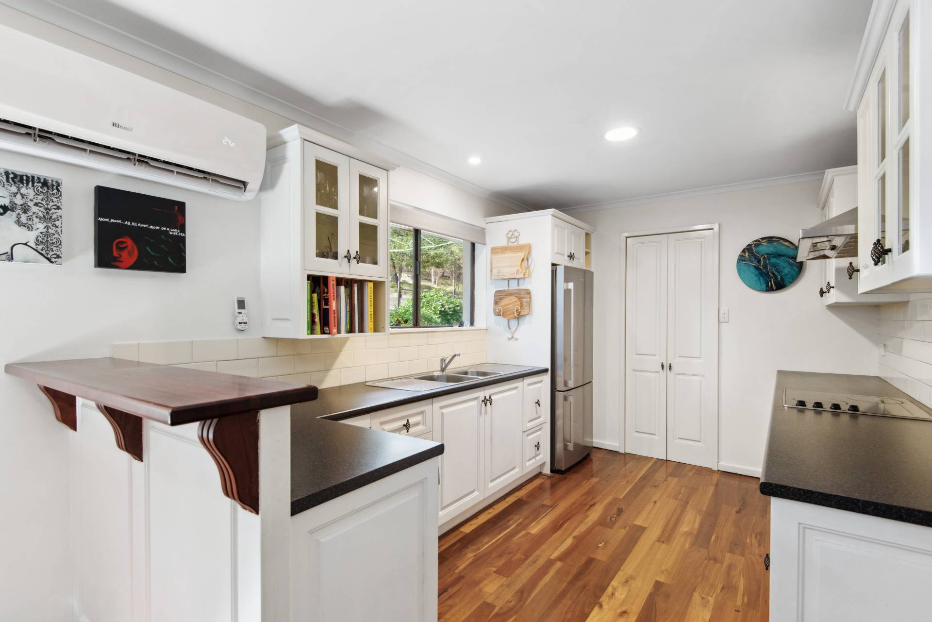 The 1982 ranch style home has a feeling of fun and practicality, where large windows capture its' outdoor surrounds, timber floors and roaring wood fire create warmth and two living rooms separated by glass panel doors are lovely touches of modern country living.