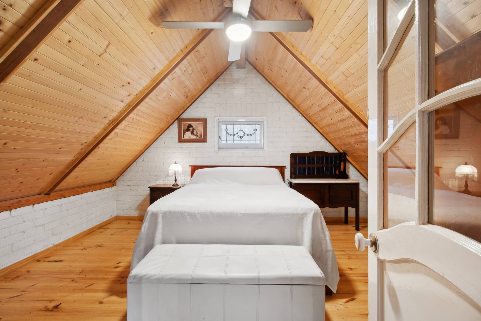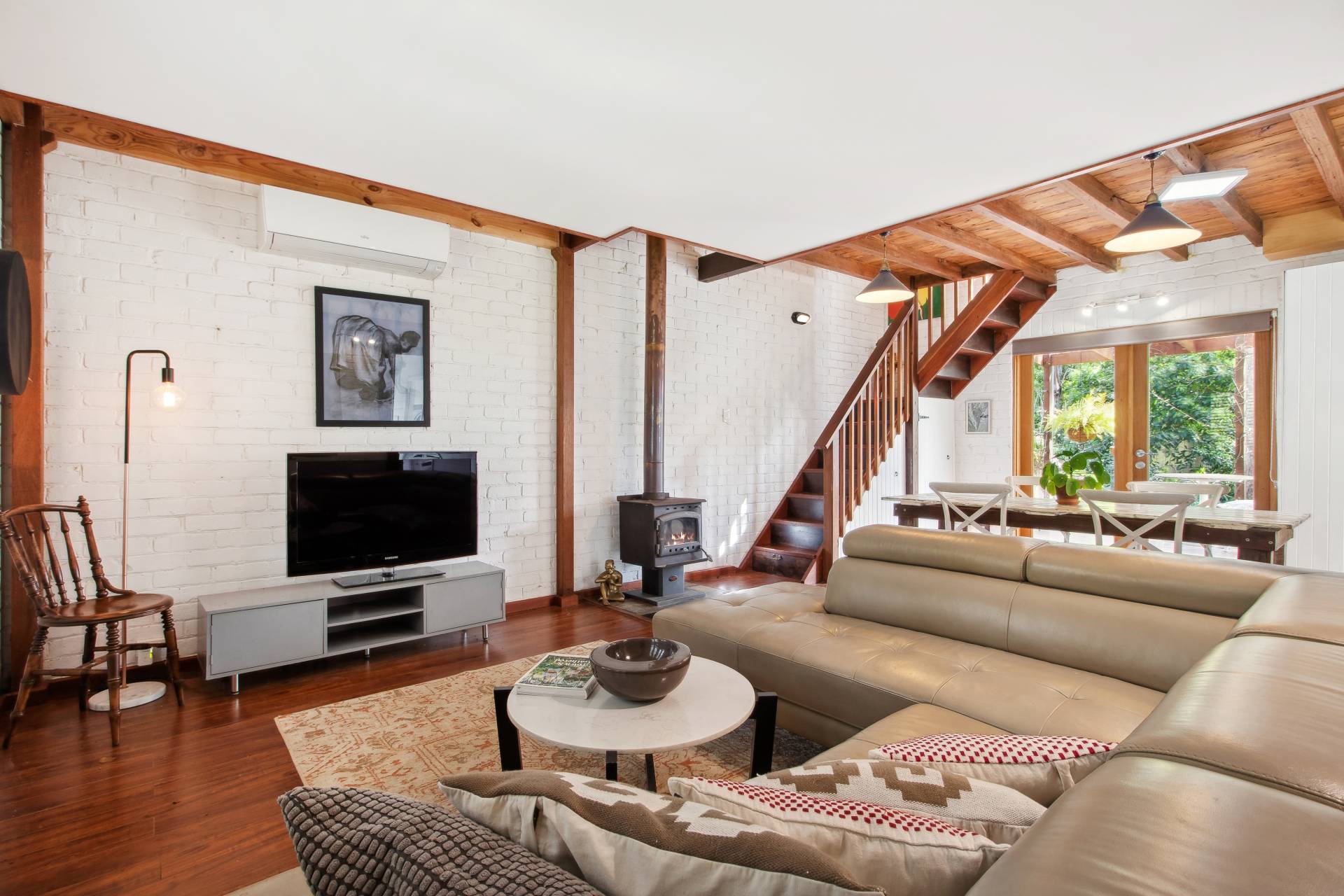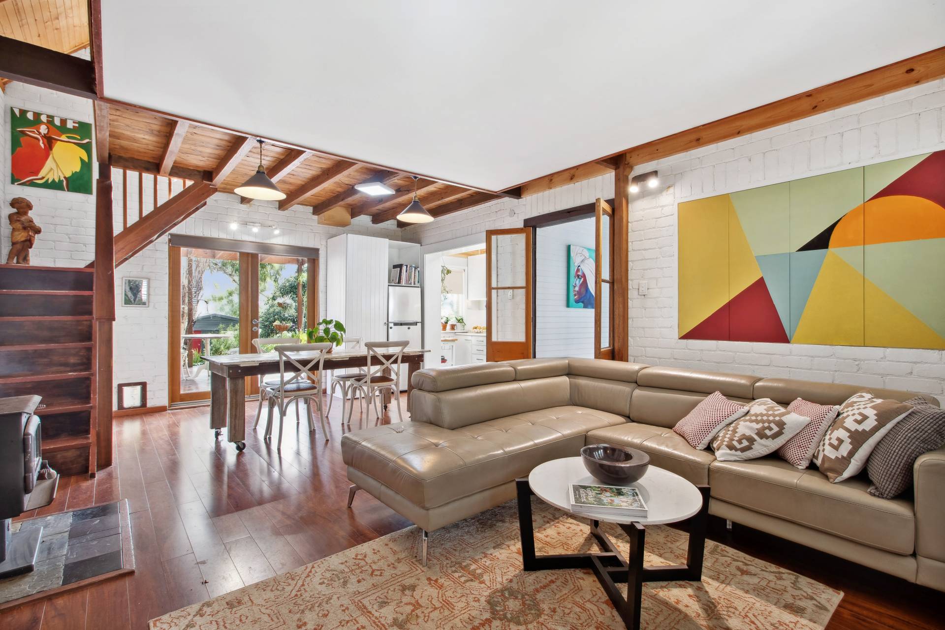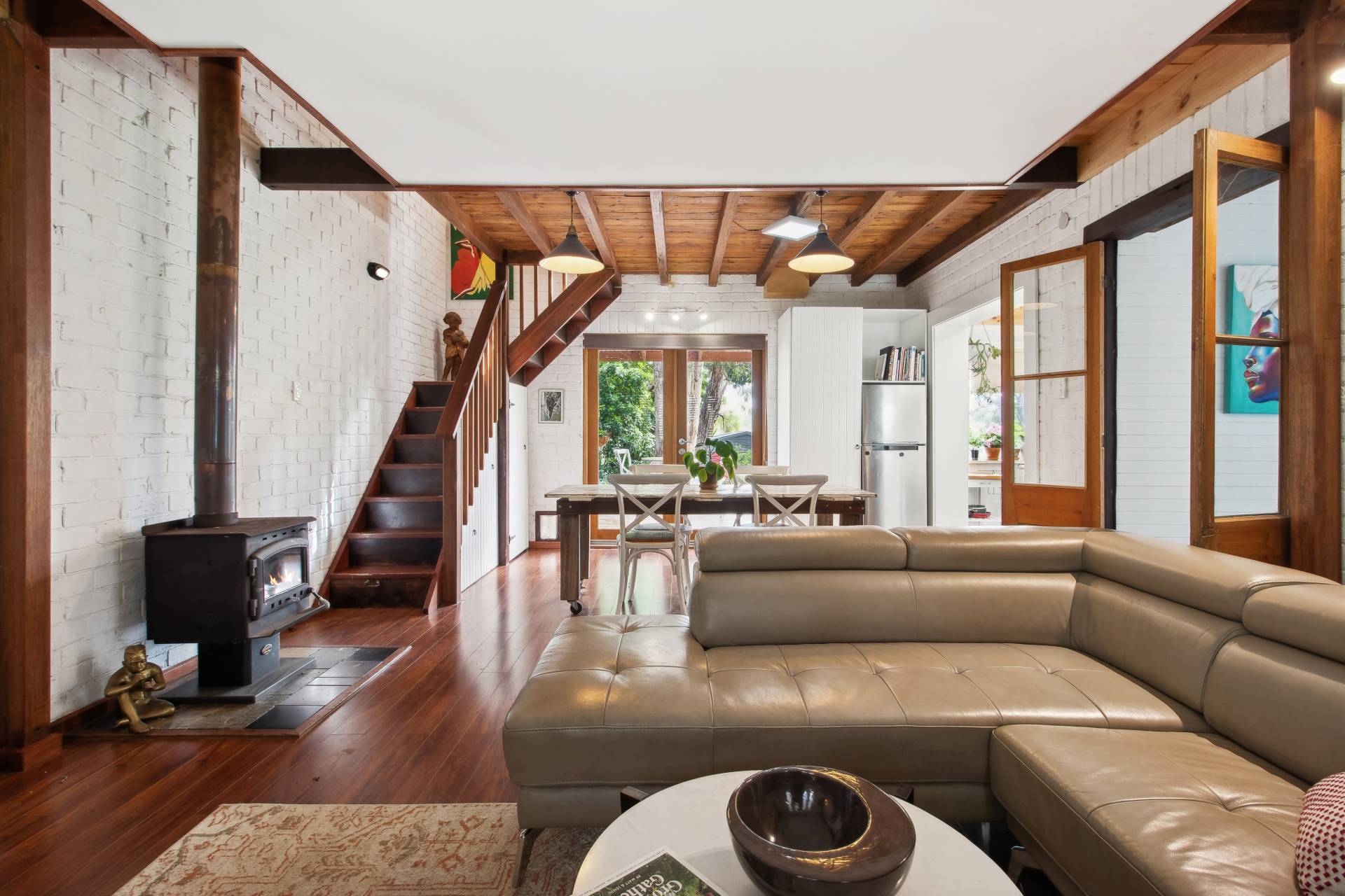 Reminiscent of a quaint English cottage, hints of industrial architecture peek through, with exposed red brick walls, solid Jarrah beams, and soaring ceilings, where skylights beam sunrays into the spaces below. For a modest footprint, this home packs a mighty punch, with ample room to host gatherings around the dining table, sprawling into a large living area next to a wood fire. The most beautiful loft bedroom is upstairs with its' own bathroom and downstairs is bedroom #2 with built in robes, adjacent to the second bathroom with baby bath.