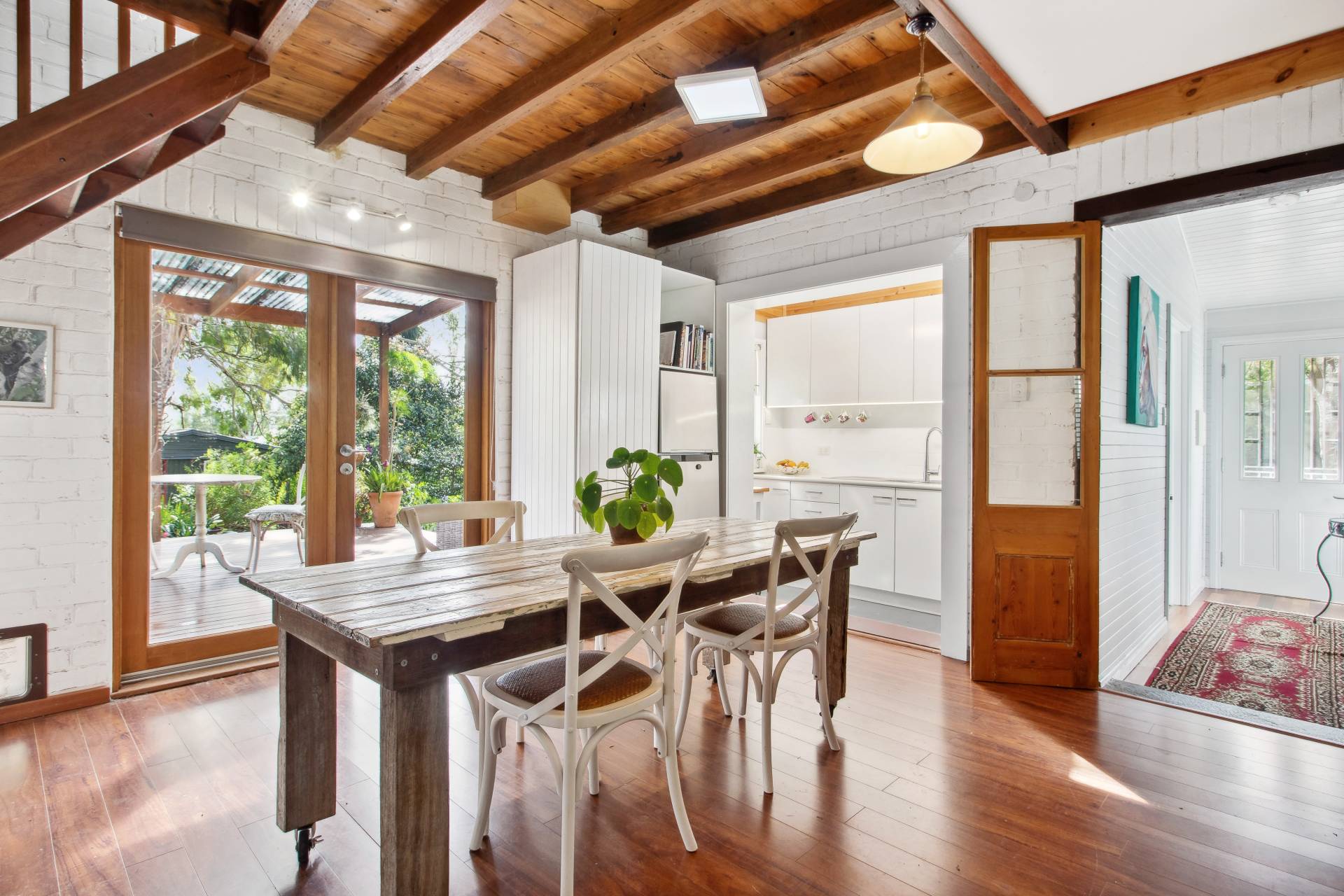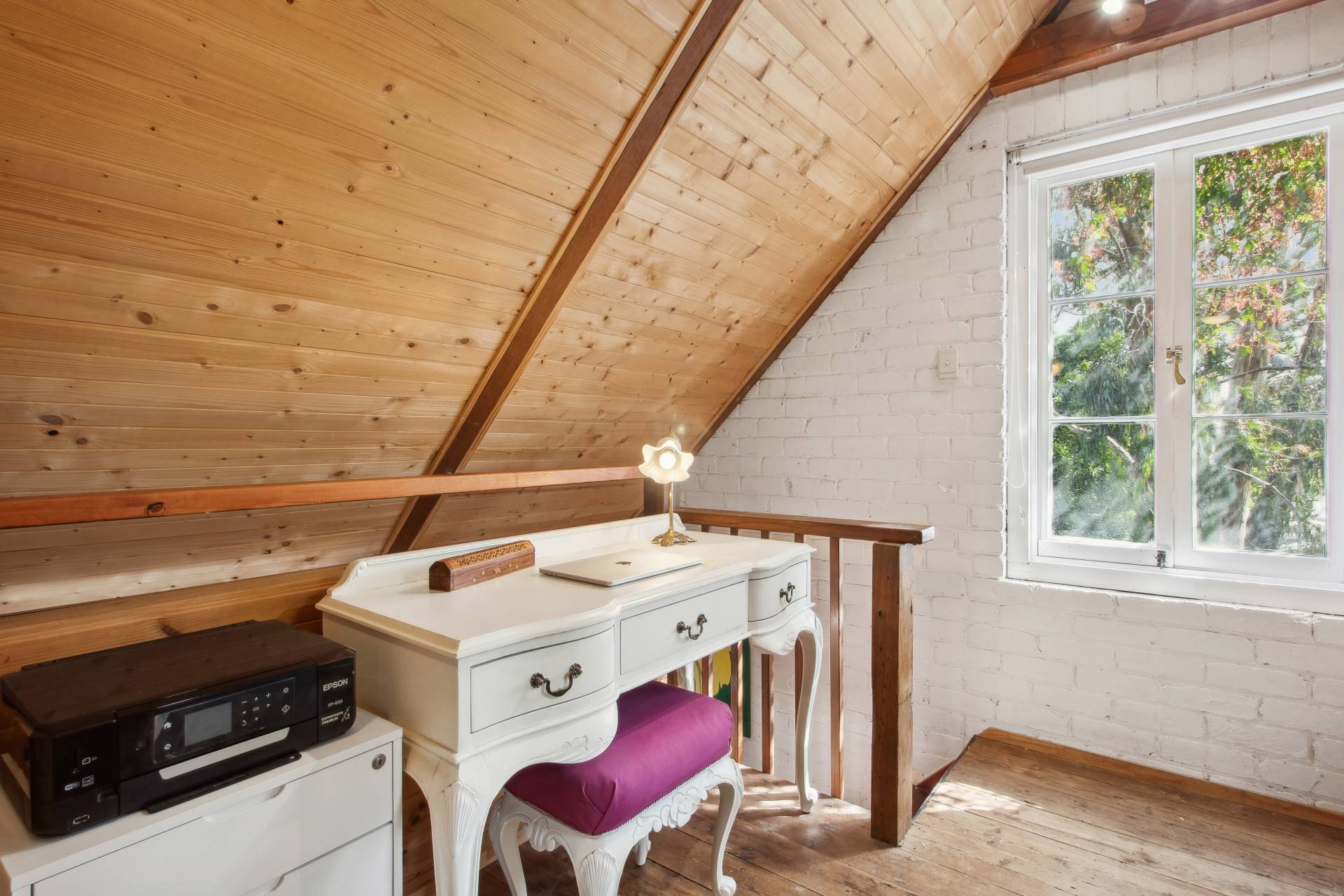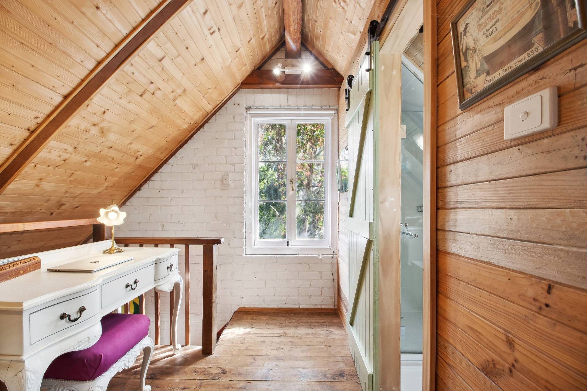 The timber staircase hides fabulous storage underneath, complete with a study nook. An additional office area is upstairs, where treetop vistas can be seen through the picture book casement window. This home very cleverly utilises its' storage options.
